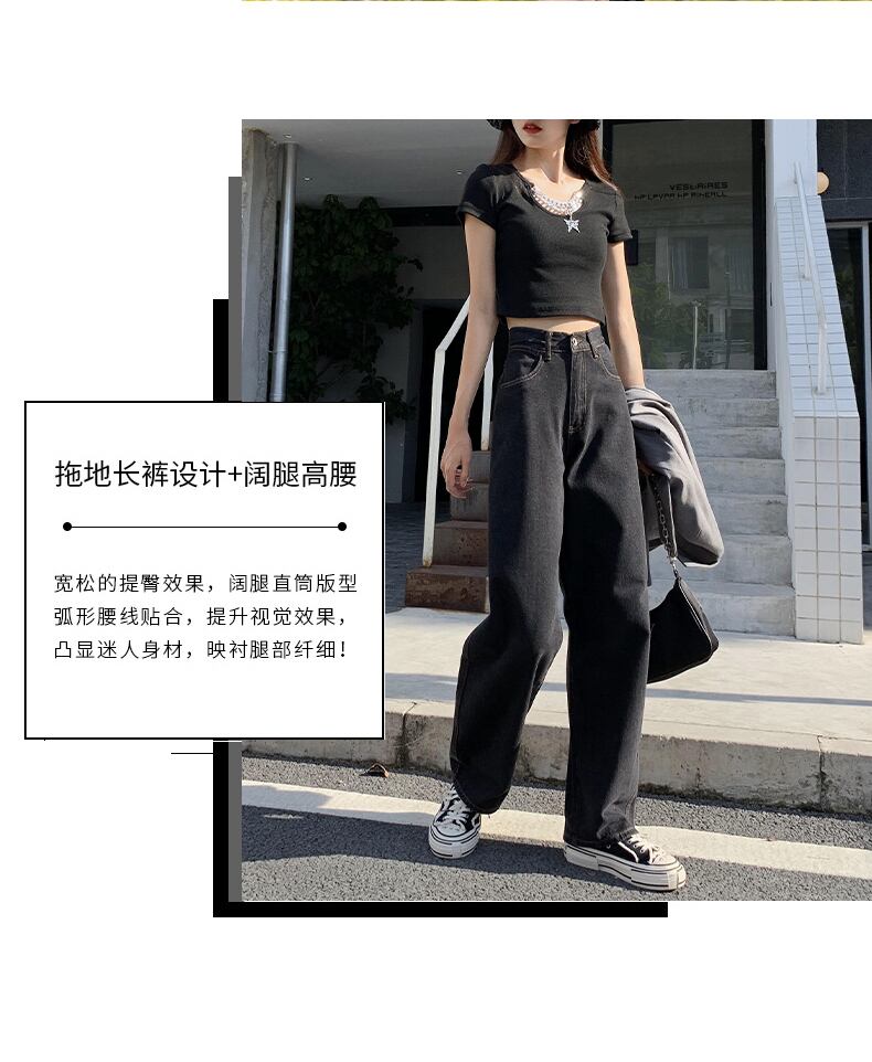 デニムワイドレッグパンツレディースルーズハイウエストは細くて背が高い2020年新作ブラックドレープモップパパロングパンツ ハイウェスト youqi10507469644