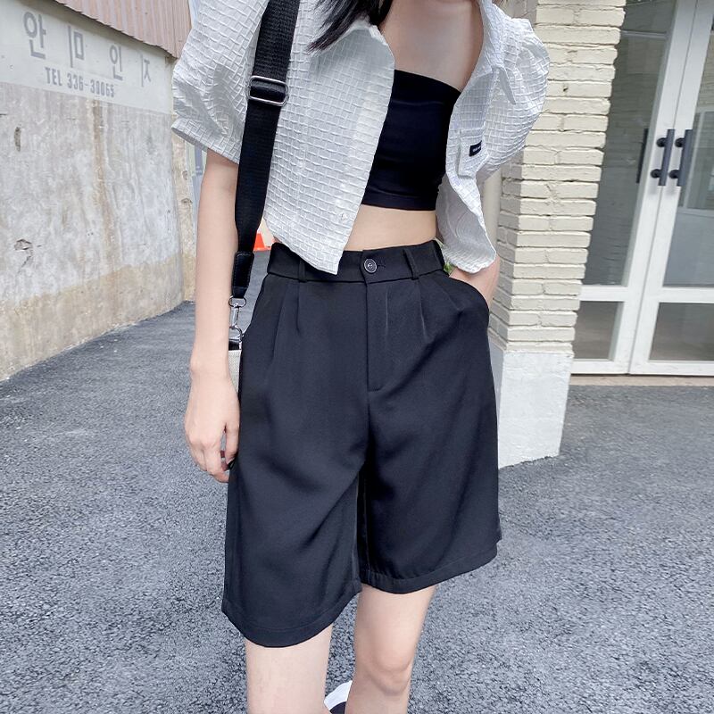 スーツショーツレディースサマーワイドレッグハイウエストドレープローズストレートカジュアルパンツブラック5点パンツ2021新品 ハイウェスト 夏物 ブルマー ワイドパンツ youqi10756771002