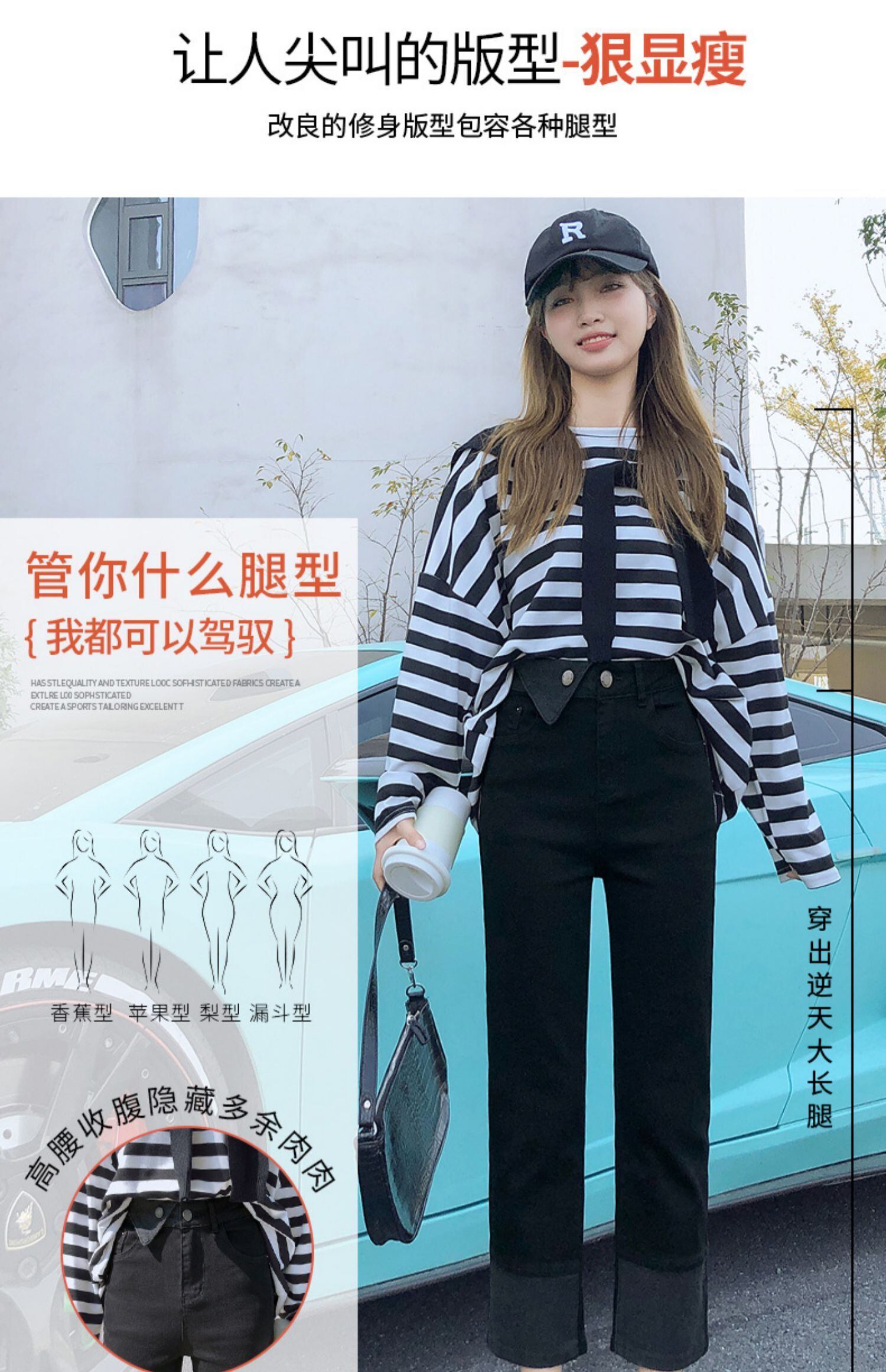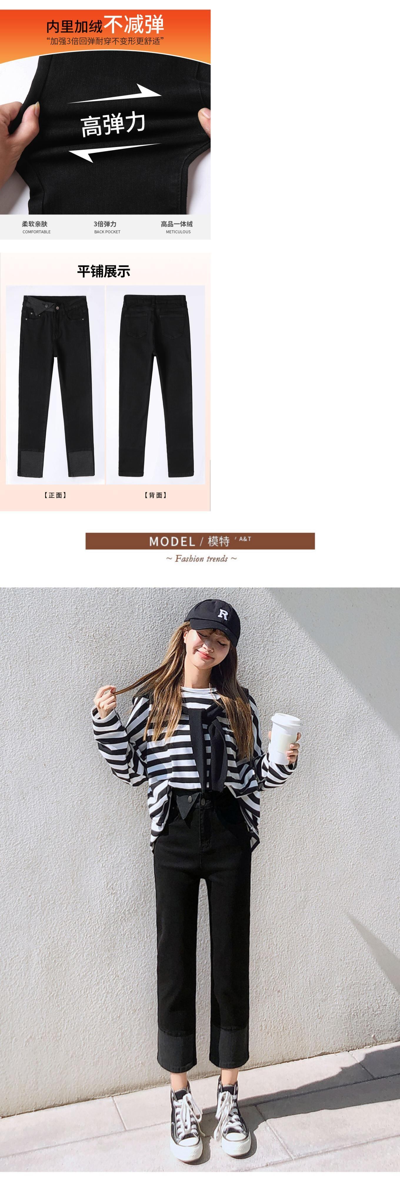 ウエストプラスフリースジーンズレディース9パンツストレートルーズルーズ秋冬2021年新作薄スモークパイプブラックパンツ オータム 秋物 ウィンター 冬物 youqi54207005277
