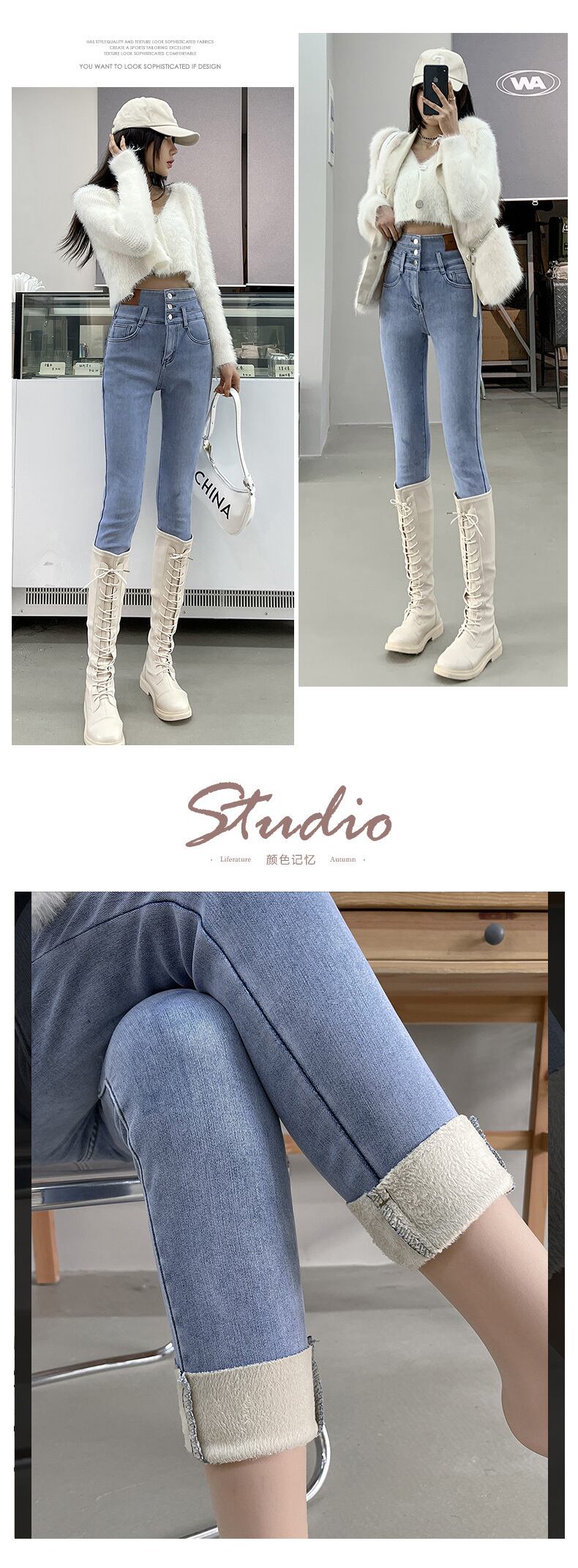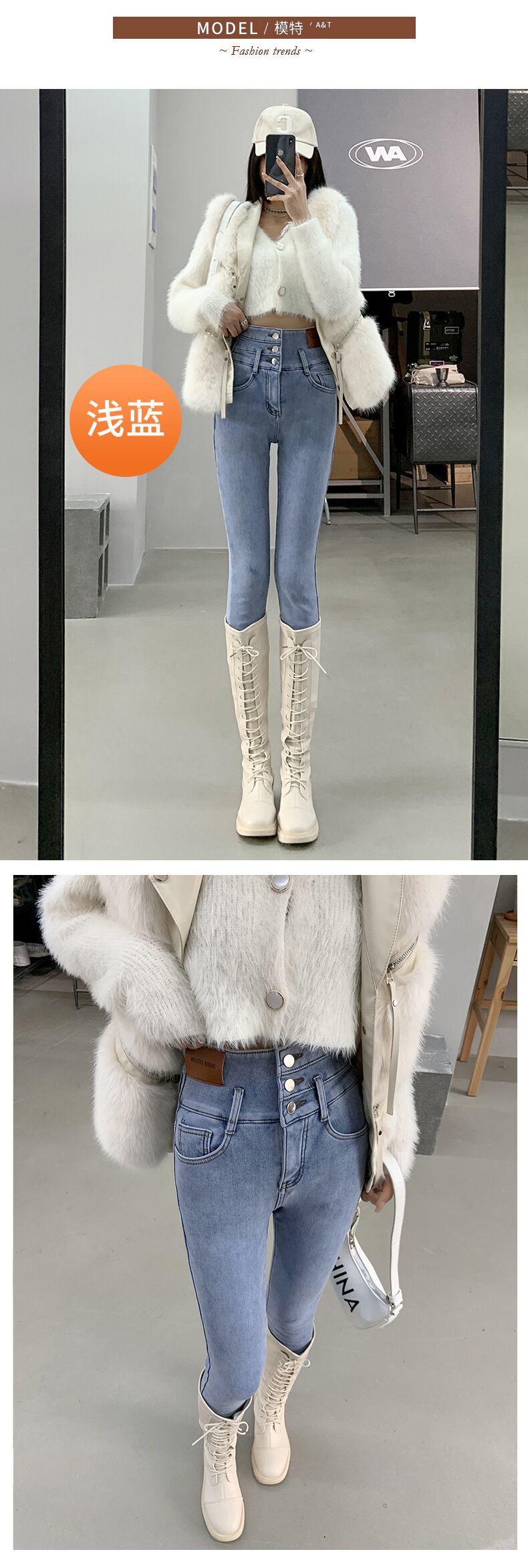 ライトブルージーンズレディース秋冬プラスベルベットハイウエストレディース2021新厚ペンシルパンツ冬 ハイウェスト オータム 秋物 ウィンター 冬物 youqi10799674255