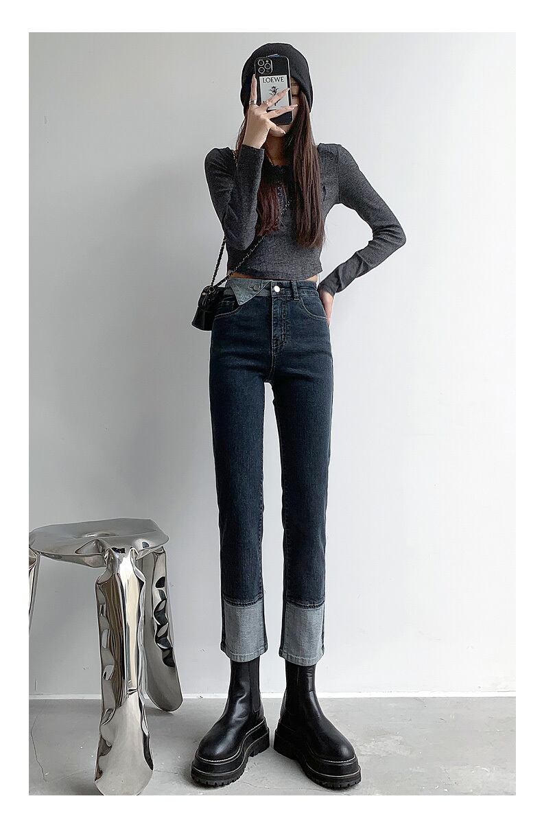 ウエストプラスベルベットストレートジーンズ女性の2021年秋冬新しいルーズで薄いスリムなかぎ針編みのパンツ オータム 秋物 ウィンター 冬物 youqi22309771063