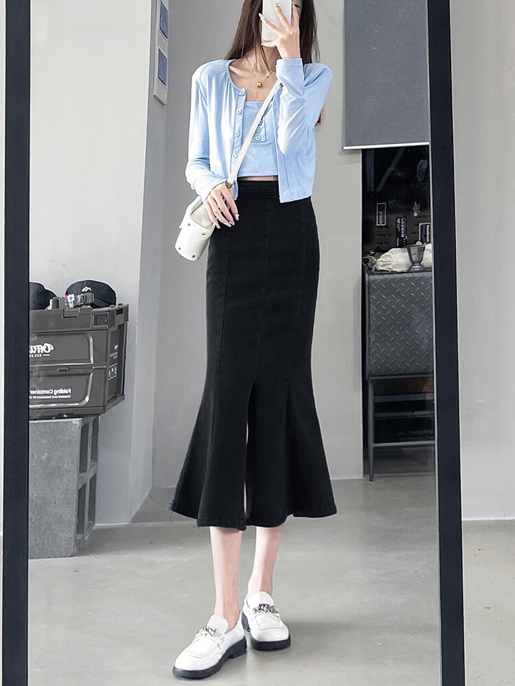 ウエストデニムスカートレディースフィッシュテールスカートスプリット一言2021年新作ブラックスカート秋冬スリムミディスカート オータム 秋物 ウィンター 冬物 youqi44313633967