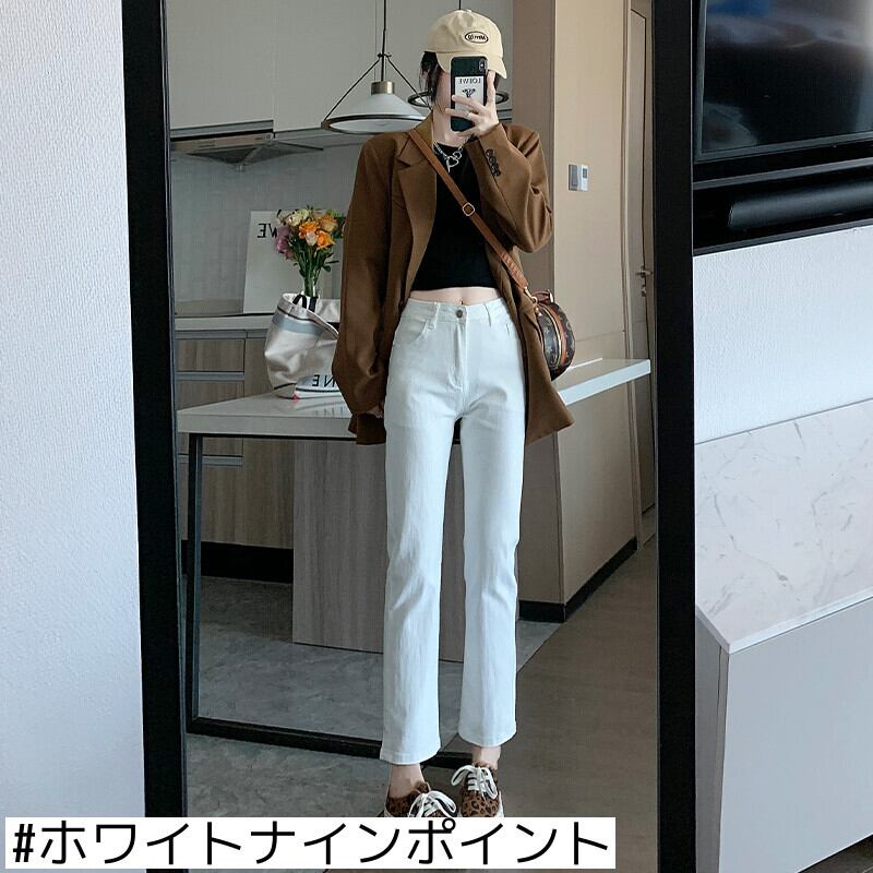 ホワイトジーンズレディースストレートチューブ秋冬プラスベルベット2021新作細くて小さいたばこパイプ9点ハイウエストパンツ ハイウェスト オータム 秋物 ウィンター 冬物 youqi81996498802