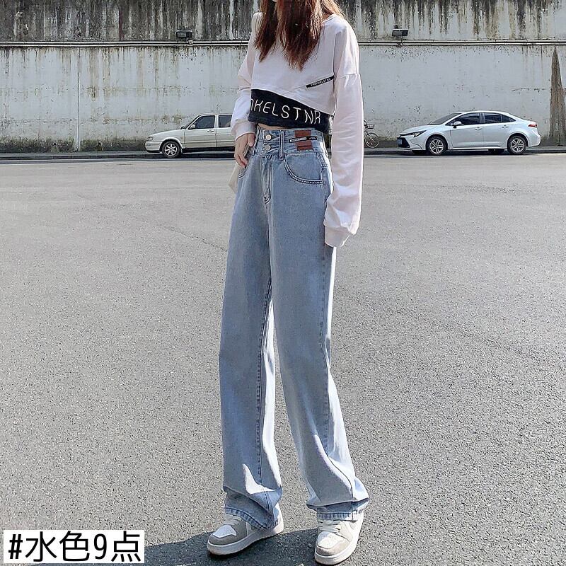 黒のワイドレッグパンツ、ハイウエストジーンズ、女性の春と秋のオールマッチストレートチューブ、薄くて床を引きずる、2021年秋のパンツ ブラック スプリング 春物 オータム 秋物 youqi95491110709