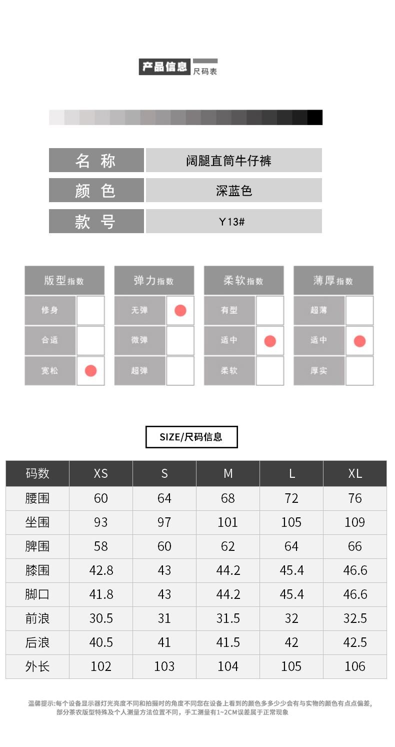 ダークブルーワイドレッグジーンズレディースゆったりとした秋の服2021新しい婦人服は薄くて床を拭いてヒョナストレートレッグパンツをドレープ オータム 秋物 youqi63146530365