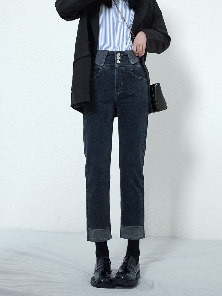 プラスベルベットジーンズレディースストレートルーズ2021秋冬新作ハイウエストシンナインポイントシンベルベットレディースシガレットパイプパンツ オータム 秋物 ウィンター 冬物 youqi6958028251