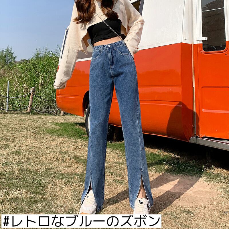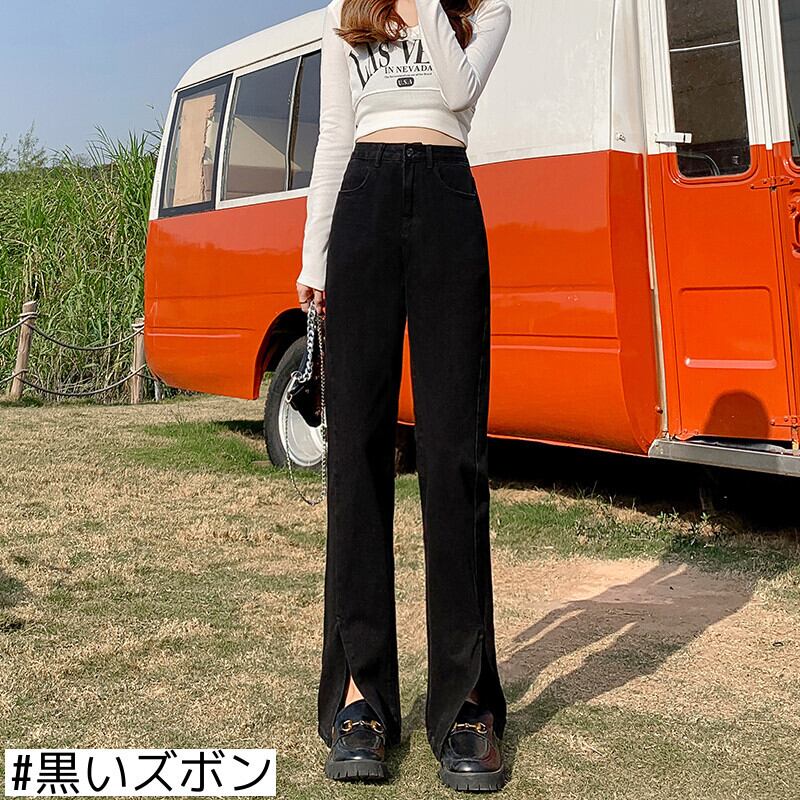 2022年ハイウエストスリットジーンズレディース春新レトロカラースリミングオールマッチダングリングややフレアパンツを長く レッド スプリング 春物 youqi40435886377