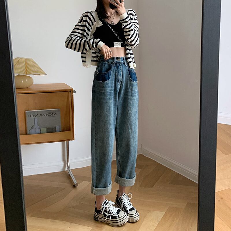 2022年春の新作ストレートジーンズレディースルーズでシンレトロなハイウエスト垂れ下がるワイドレッグパンツトレンディ ハイウェスト スプリング 春物 ワイドパンツ youqi86709332239