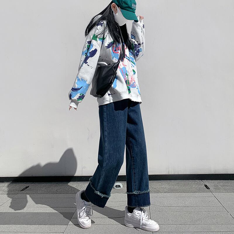 -ウエストワイドレッグパンツ、カーリージーンズ、女性用ルーズオールマッチレトロ春秋モデル2021年新作ストレートレッグモップパンツ スプリング 春物 オータム 秋物 youqi79091715440