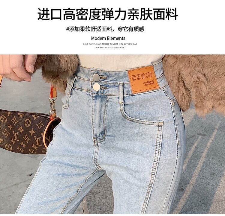 ライトカラージーンズレディーススプリットストレートストレッチマイクロフレアパンツハイウエスト2022新しいスリムオールマッチモップパンツ ハイウェスト レッド youqi36514323261