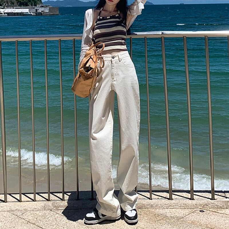 2021年秋冬新作ストレートレッグハイウエストジーンズレディースルーズ&シンオールマッチモッピングパンツアプリコットレディースパンツ オータム 秋物 ウィンター 冬物 youqi54249517806