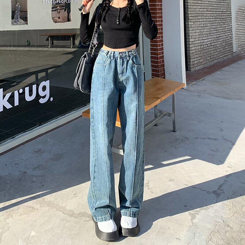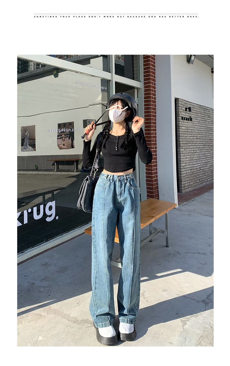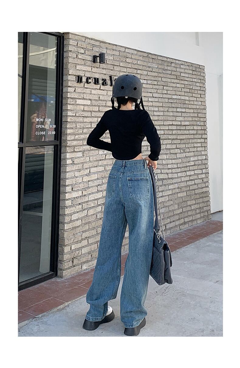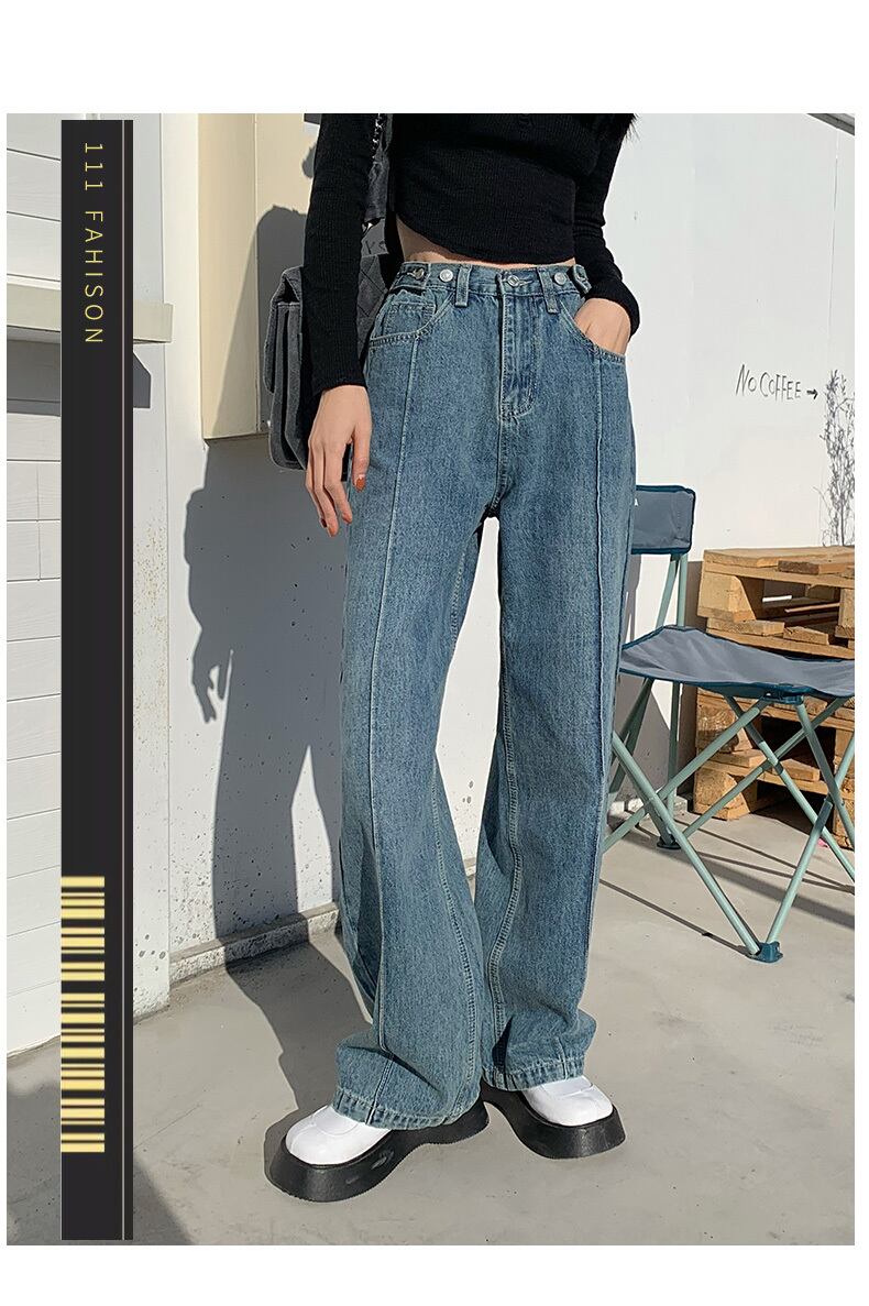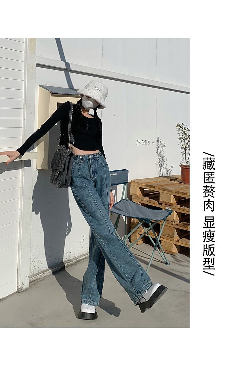 2022年春秋新作ハイウエストワイドレッグジーンズレディースドレープローズルーズオールマッチシンストレートレッグモップパンツ スプリング 春物 オータム 秋物 youqi33287874348