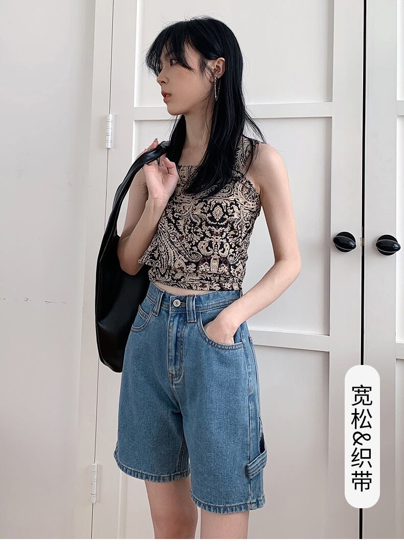 ブラックグレーデニムショーツレディースサマールーズ2021ニューネットレッドショーシンハイウエストワイドレッグパンツアウターウェアトレンディイン ハイウェスト 夏物 ブルマー ワイドパンツ youqi78749276471