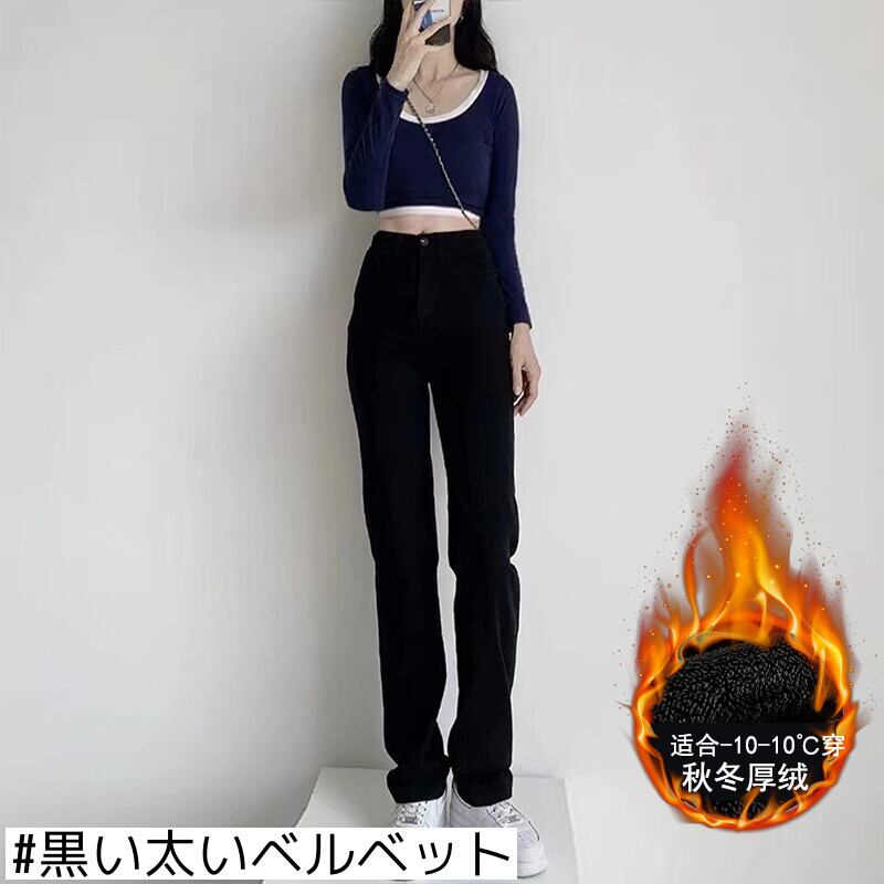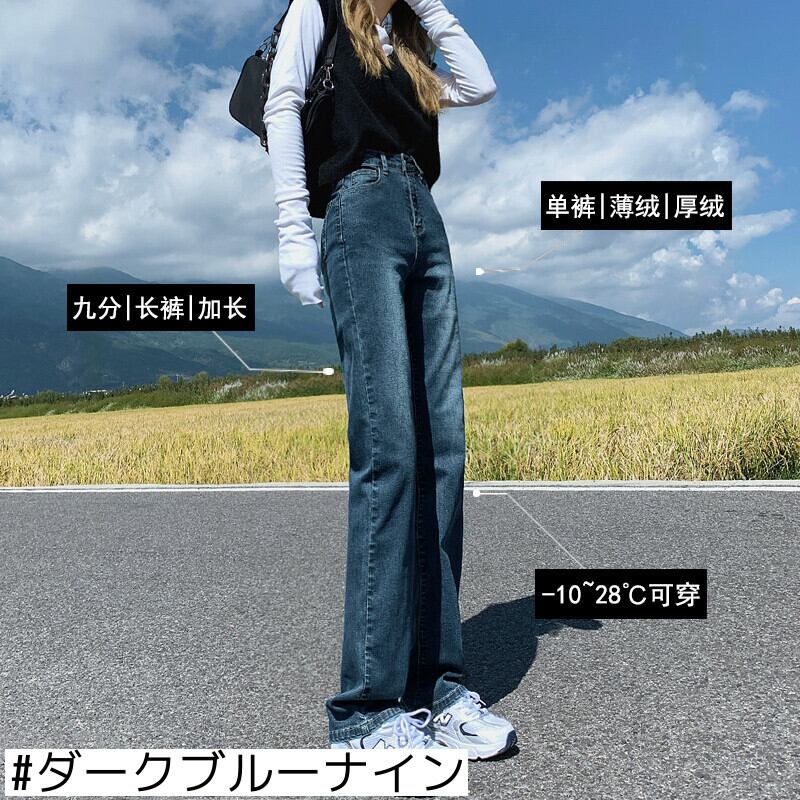ウエストストレートジーンズレディース春秋ダークブルー2021新作スリミングプラスベルベット秋冬ロングシガレットパイプパンツ スプリング 春物 オータム 秋物 ウィンター 冬物 youqi97856647555