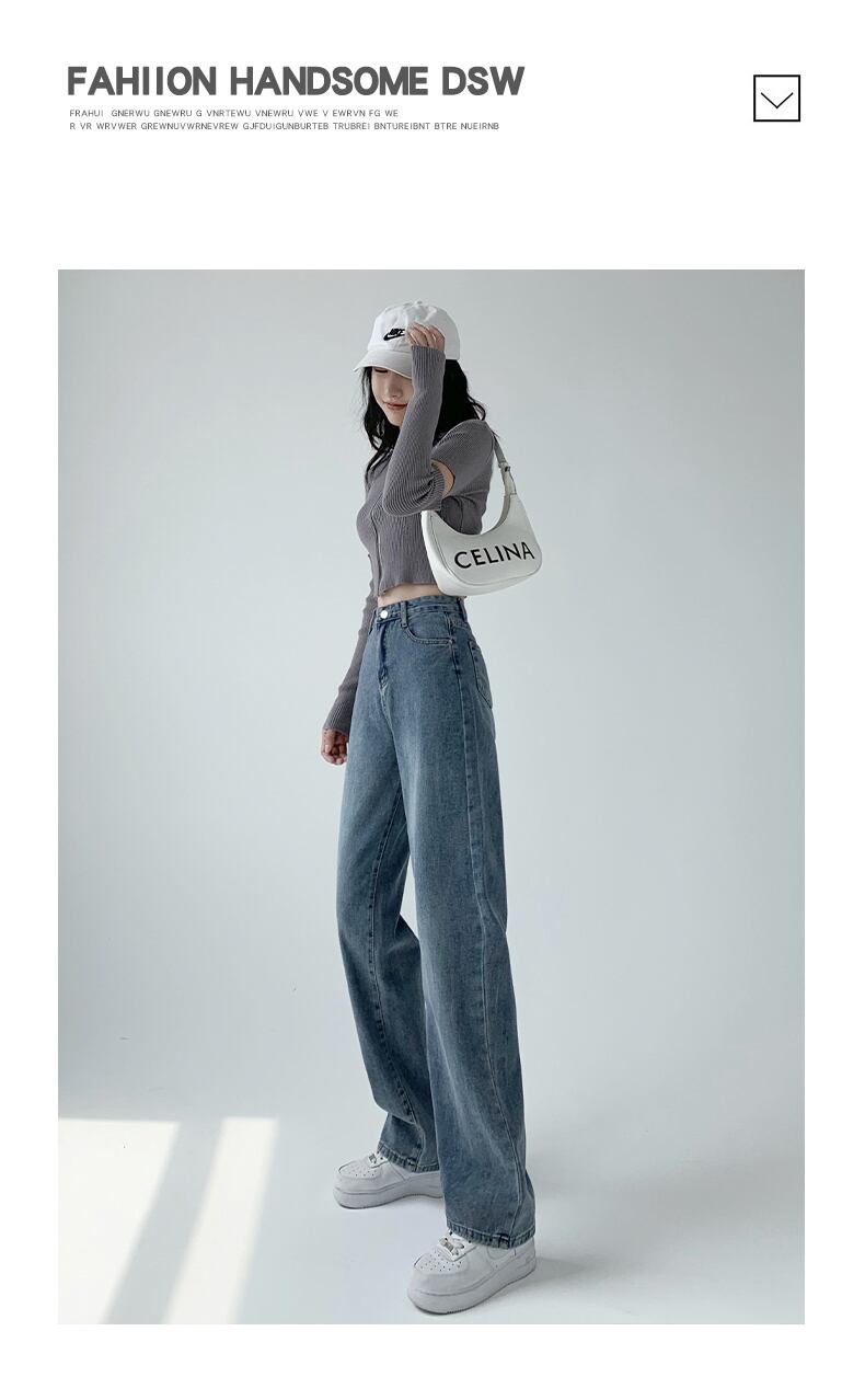 -ウエストワイドレッグジーンズレディース春秋ルーズドレープレトロオールマッチ2021秋レディース服スリムストレートパンツ スプリング 春物 オータム 秋物 youqi36522395915