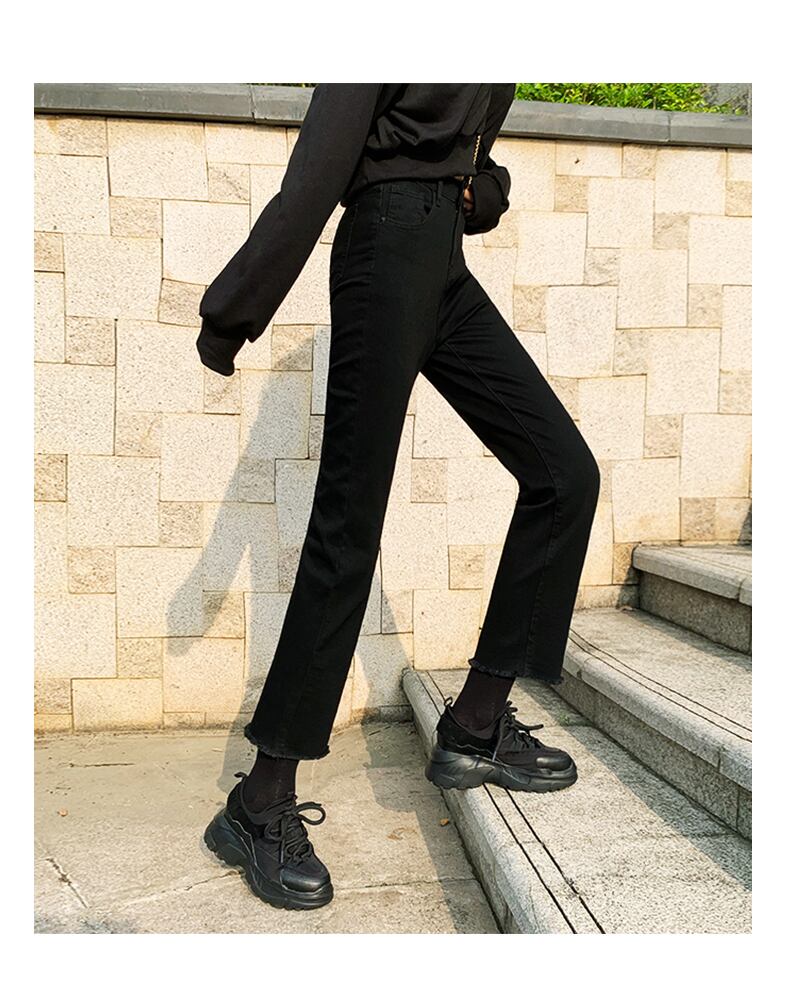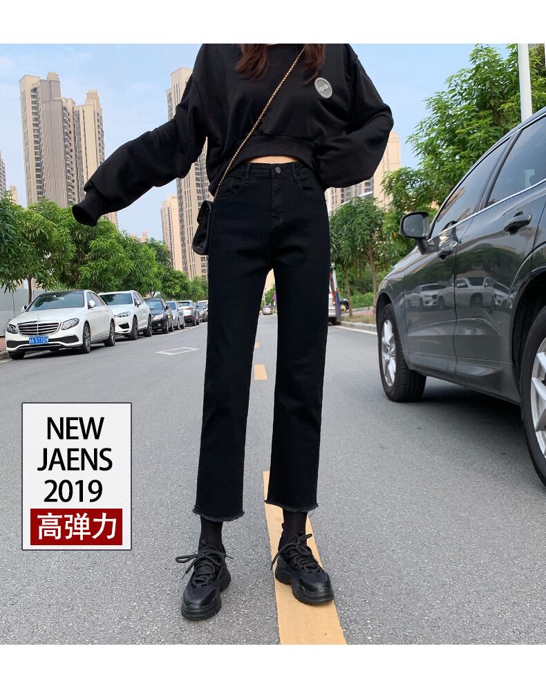 ブラックストレートジーンズレディースルーズハイウエストスリムスプリング服2020新作レディース9点ワイドレッグパンツトレンディ 春物 youqi72145410607