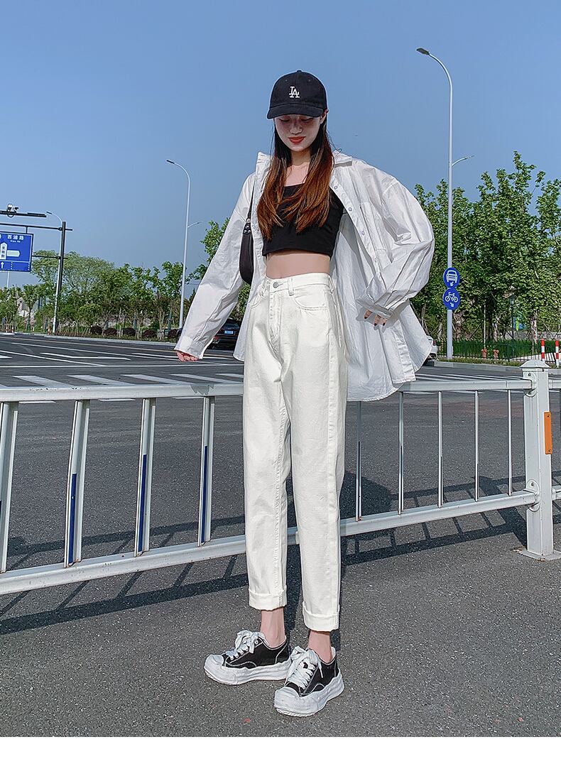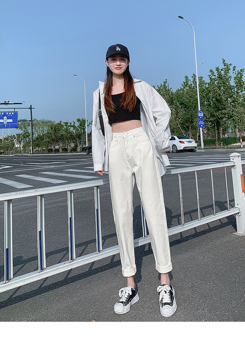 -エンドホワイトパンツ女性の夏の薄いセクションハイウエストスリムストレートジーンズルーズ2021新しい小さな男 サマー 夏物 youqi86934255650