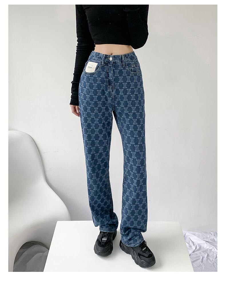 スパイスガールズジャカードブルージーンズレディース2021年春秋プリントルーズストレートワイドレッグモッピングパンツ スプリング 春物 オータム 秋物 ワイドパンツ youqi9832624394