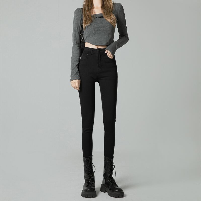 ブラックジーンズ女子春秋ハイウエストオールマッチ自家栽培は細くて背の高い9点ペンシルパンツ薄手のベルベット冬 ハイウェスト スプリング 春物 オータム 秋物 ウィンター 冬物 youqi33849278110