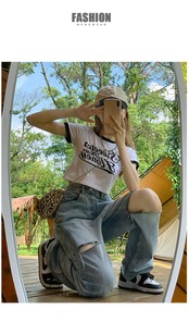 ネットレッドリッピングワイドレッグジーンズレディースサマールーズ2021新しいオールマッチパンツは薄いストレートハイウエストタイドを示しています ハイウェスト 夏物 youqi93274468320