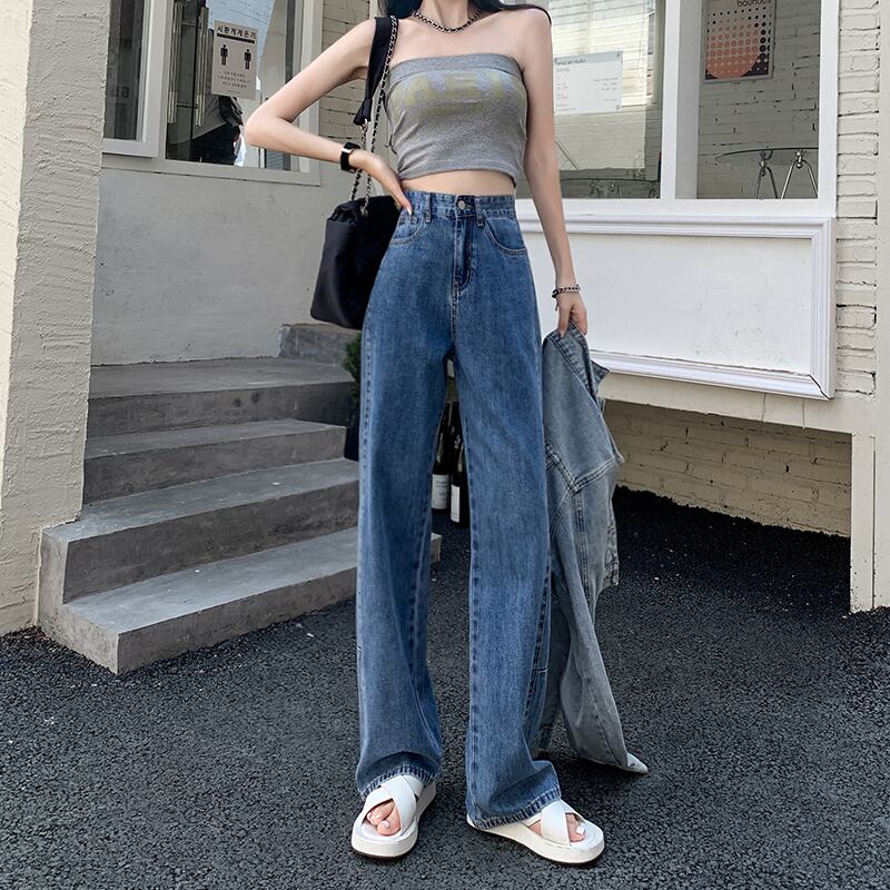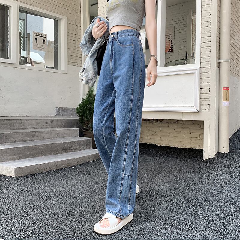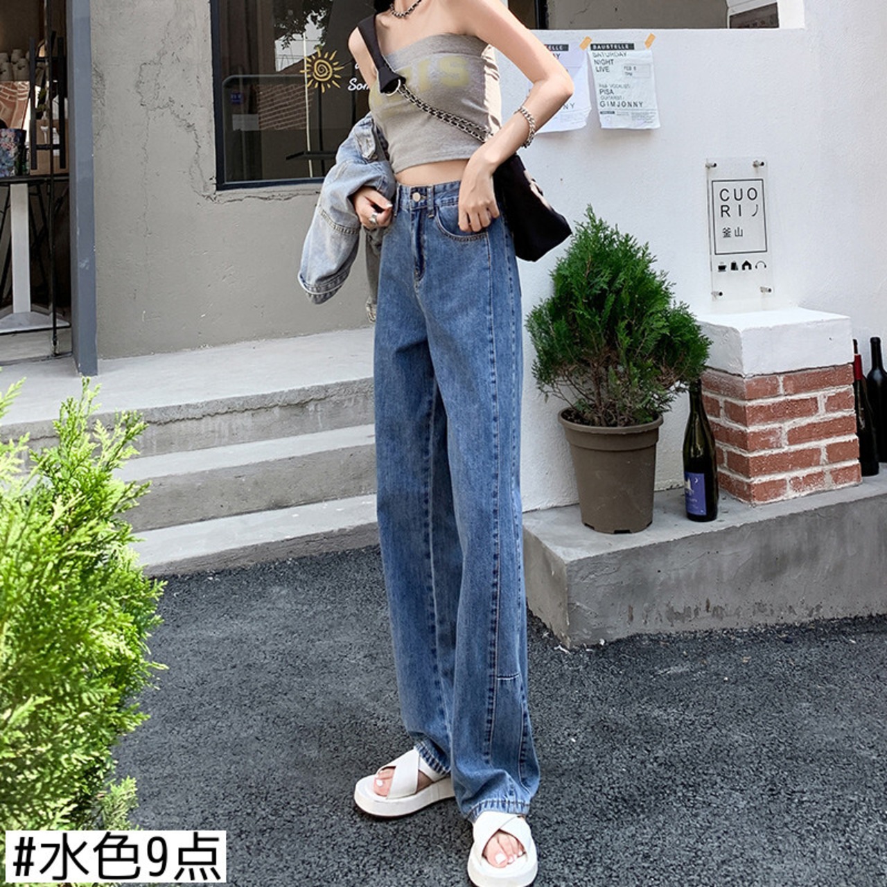 -ウエストワイドレッグパンツジーンズレディースサマーシンルーズルーズ2021新作スリムストレートチューブドレープモップパンツ 夏物 youqi60176318287