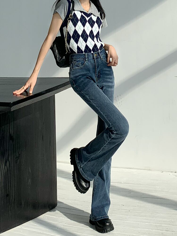 2021年新作フレアジーンズレディース春秋伸縮性レトロ9点ハイウエストスリミング秋タイトフレアパンツ ハイウェスト レッド エラスティック スプリング 春物 オータム 秋物 youqi86968119112