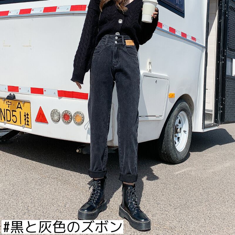 ブラックグレージーンズ女性ハーラン2021年春秋ルーズで薄いハイウエストオールマッチ大根お父さん9ポイントパンツ ハイウェスト スプリング 春物 オータム 秋物 youqi22346207488