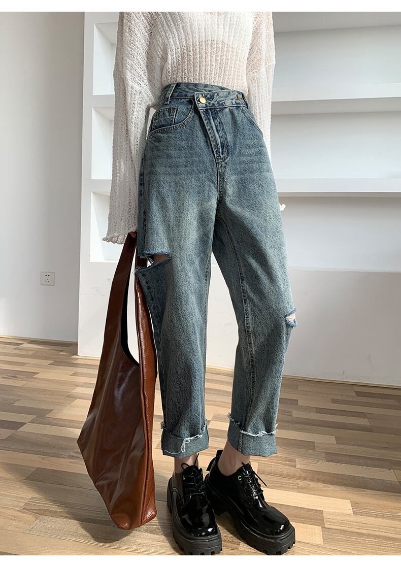 中空の不規則なハーレムジーンズ女性の夏の薄いセクションルーズで薄いレトロなハイウエストストレート大根パパパンツ ハイウェスト サマー 夏物 youqi52048605505