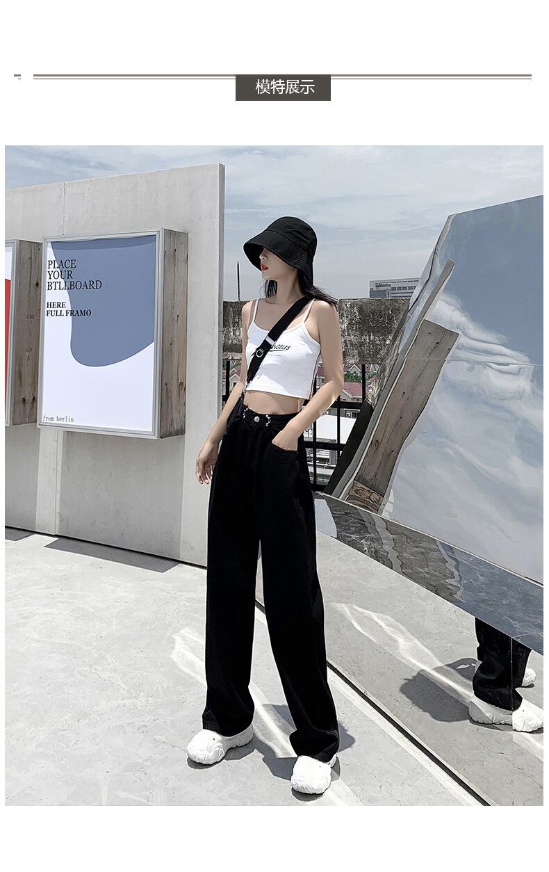 ブラックワイドレッグジーンズレディースドレープローズ2020新しいハイウエストストレートチューブスリムで薄いモップパパパンツ youqi85704156789