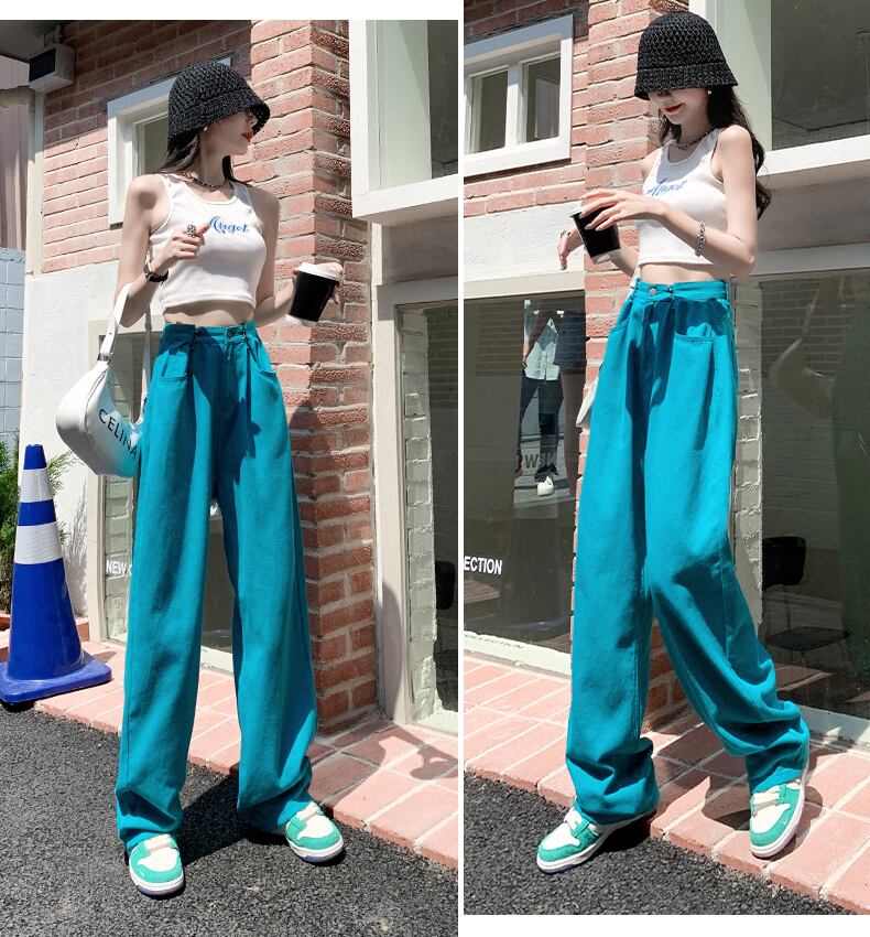 絞り染めワイドレッグジーンズレディースルーズサマー薄手ハイウエストスリミングデザインストレートカラーモップパンツトレンディ 夏物 youqi12443594512