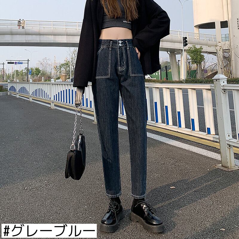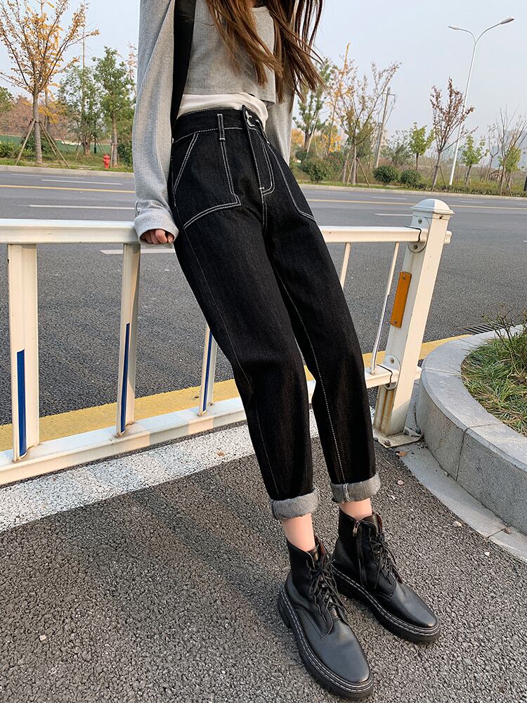 2021年新作ブラックハーレムジーンズレディース春秋ルーズハイウエストストレートワイドレッグカブパパ秋パンツ ハイウェスト スプリング 春物 オータム 秋物 ワイドパンツ youqi56635746192