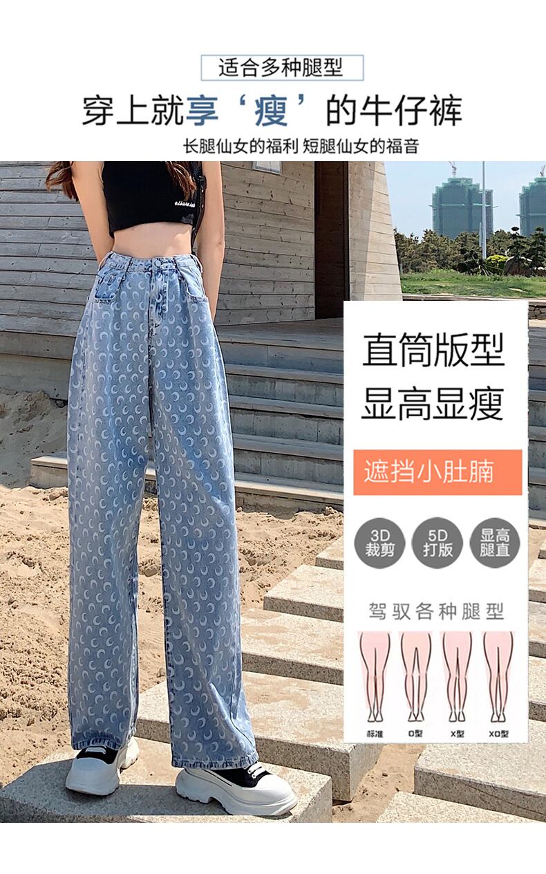 刺繡ジーンズレディースサマーシンセクションルーズワイドレッグ2021ウエストシン多用途ストレートプリントパンツ レッド 刺繍 夏物 ワイドパンツ youqi76091853048