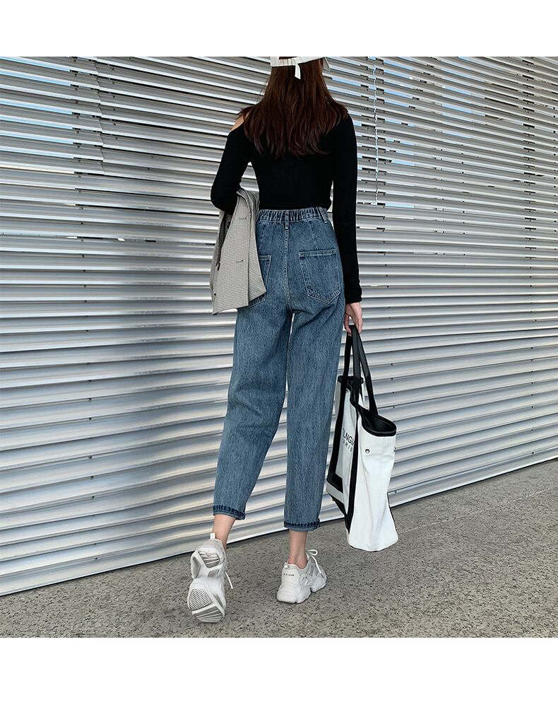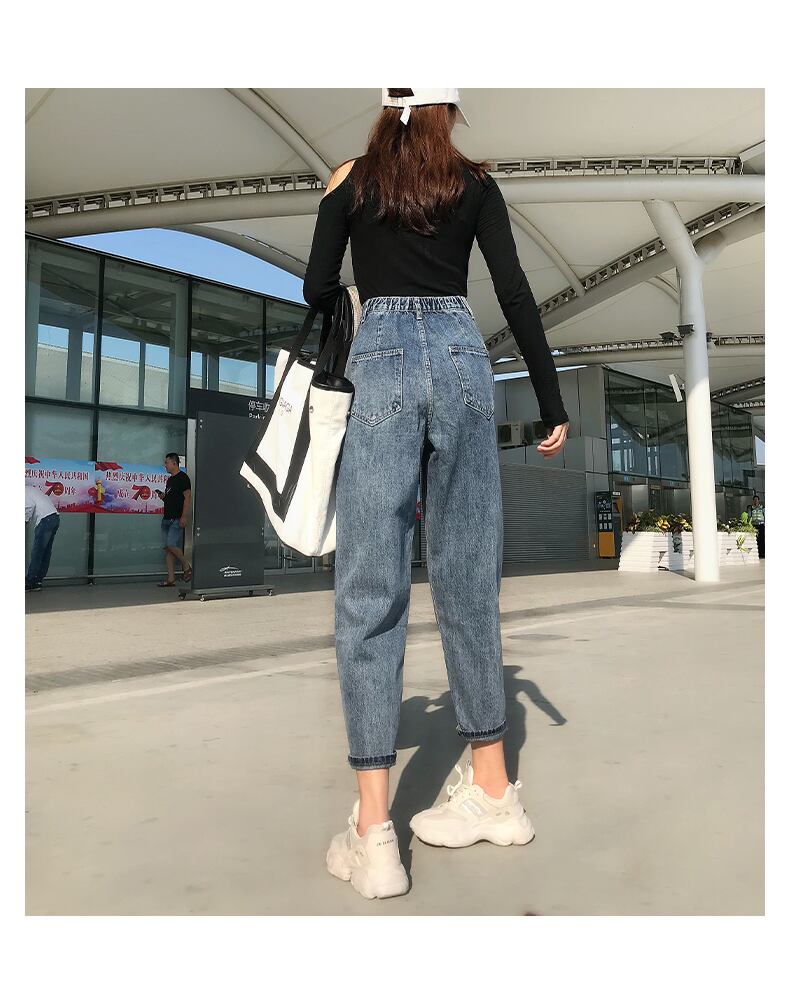 2020年新作ハーレムジーンズレディースハイウエストルーズラディッシュパンツは薄手9点伸縮性ウエストパパパンツ春 ハイウェスト エラスティック スプリング 春物 youqi32329730598