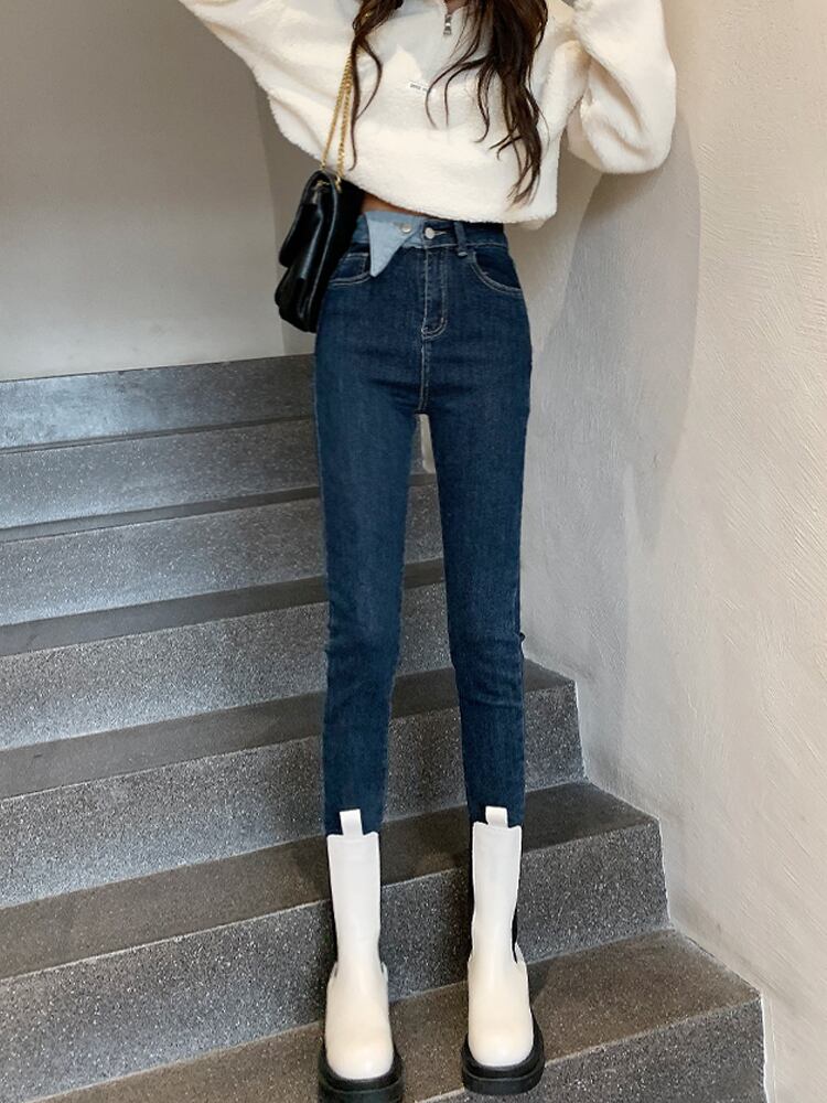 ダークブルージーンズレディース春秋ハイウエストタイトスキニーパンツ伸縮性レディース2021新作オールマッチ9点パンツ ハイウェスト エラスティック スプリング 春物 オータム 秋物 youqi95996281318