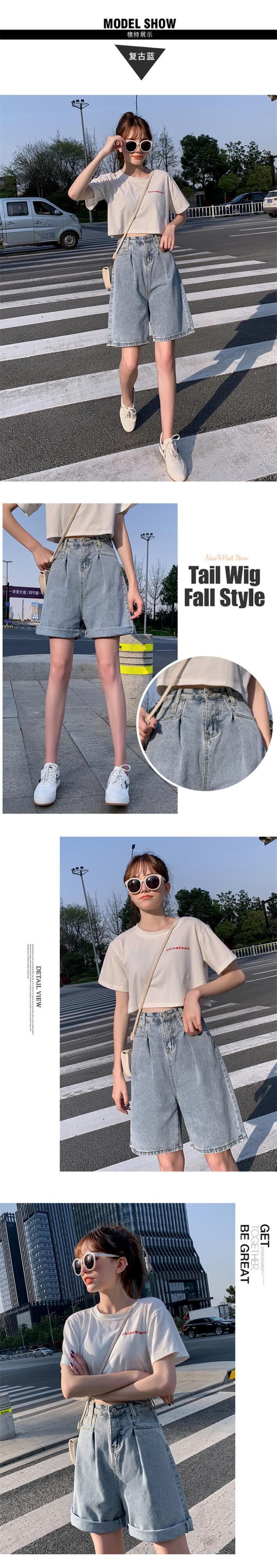 デニムショートパンツレディースサマーシンセクション2020ニューハイウエストシンルーズワイドレッグ香港スタイル5点パンツトレンディなイン 夏物 ショーツ ブルマー youqi90640162332