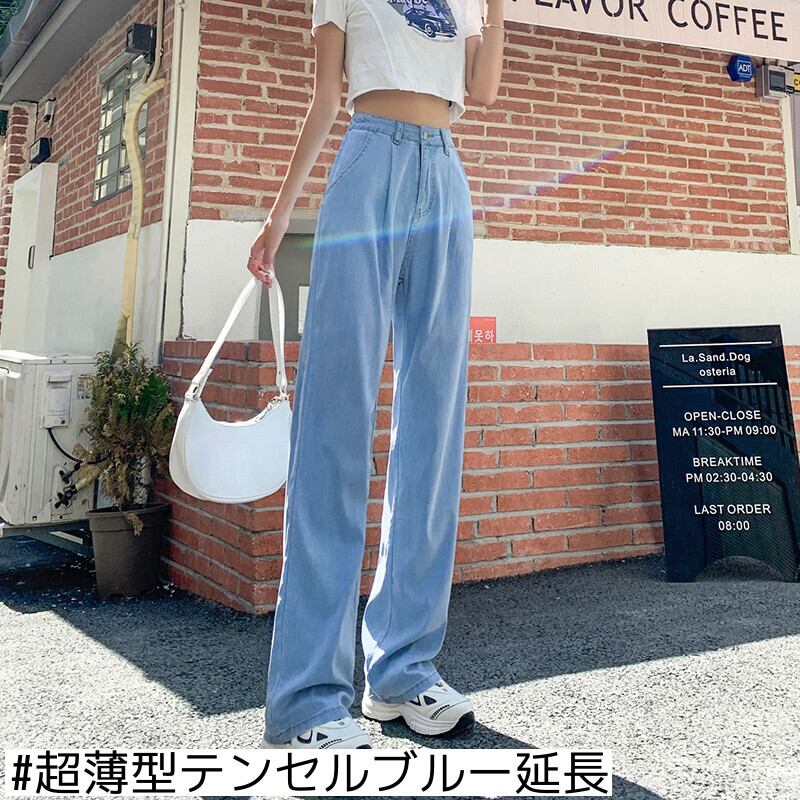 超薄型テンセルジーンズ女性の2021年夏の新しいハイウエストの薄いルーズワイドレッグモップパンツ9ポイントとズボン サマー 夏物 youqi6518258358