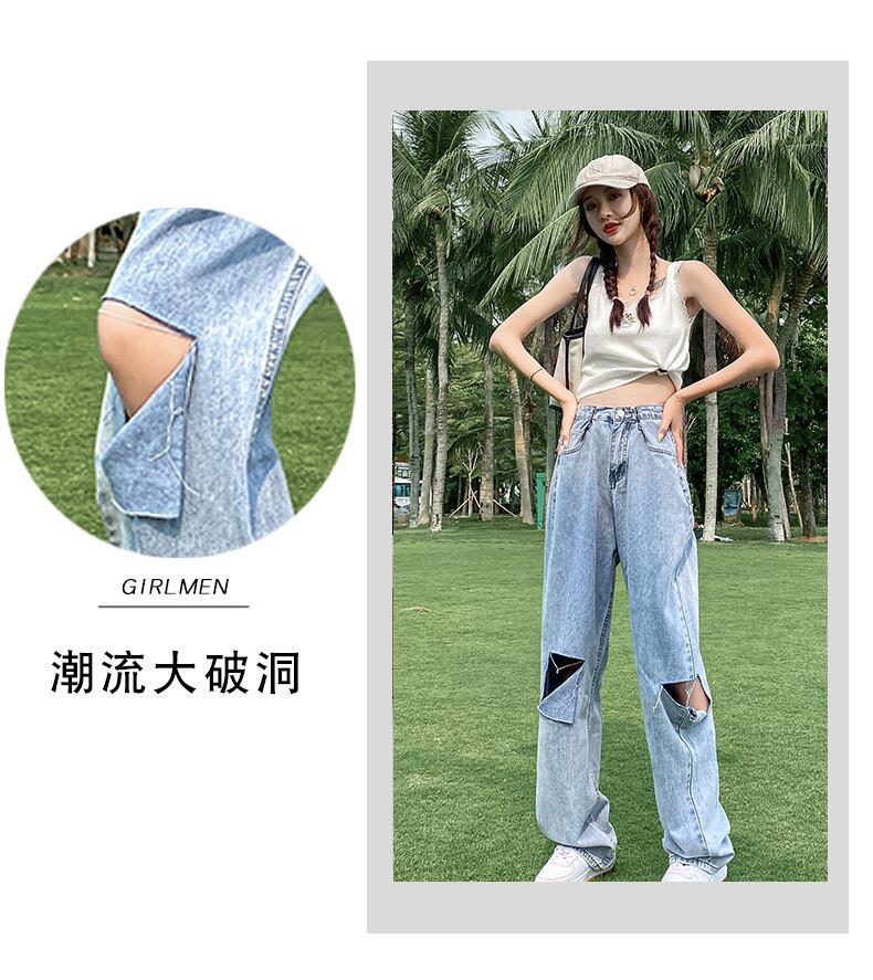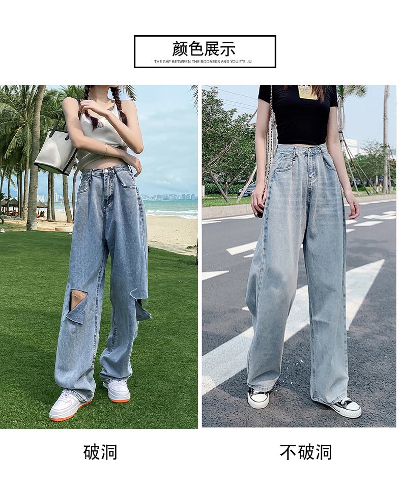 ウエストビッグホールジーンズ女性ワイドレッグ垂れ下がる2021年夏新作薄穴パンツトレンディなイン サマー 夏物 ワイドパンツ youqi8423146603