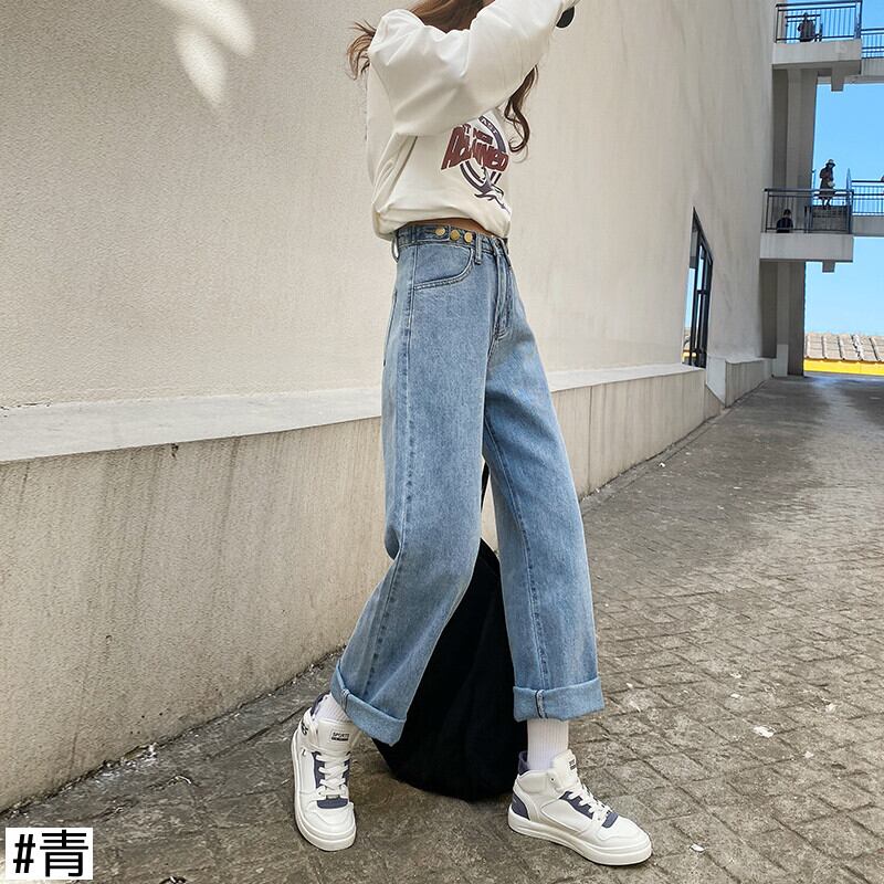 ストレートレッグジーンズレディースルーズハイウエストワイドレッグスチューデントオールマッチ秋冬シンパパプラスサイズファットmmプラスベルベットパンツ 大きめサイズ オータム 秋物 ウィンター 冬物 youqi81523248541