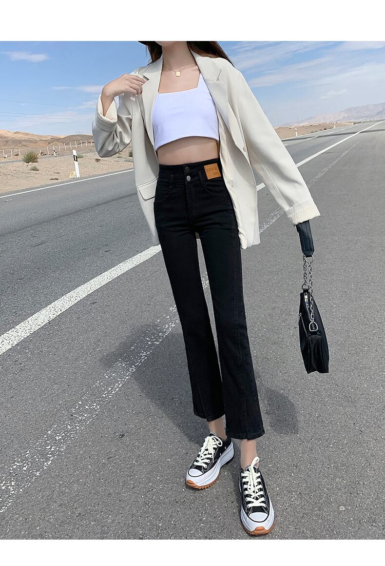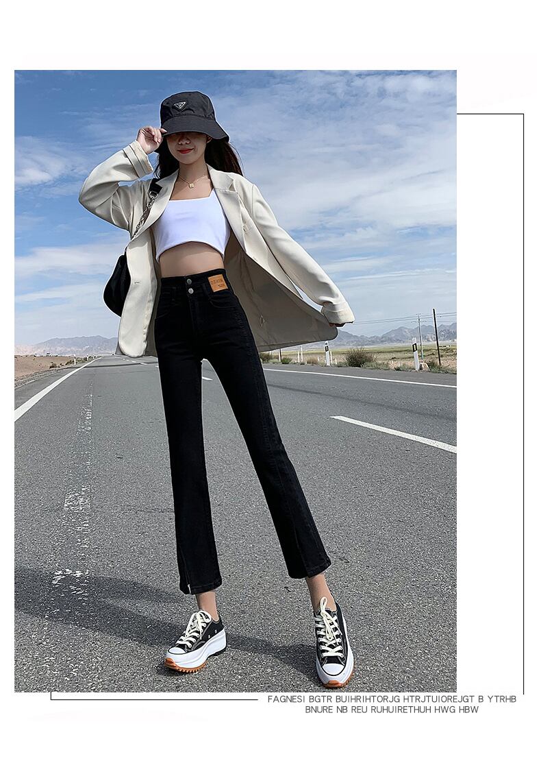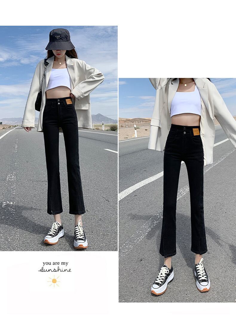 ブラックハイウエストスリムストレートジーンズレディーススプリットエラスティック秋オールマッチ2021ニュースタイルスリミング9点たばこパイプ ハイウェスト 伸縮 オータム 秋物 youqi28475794437