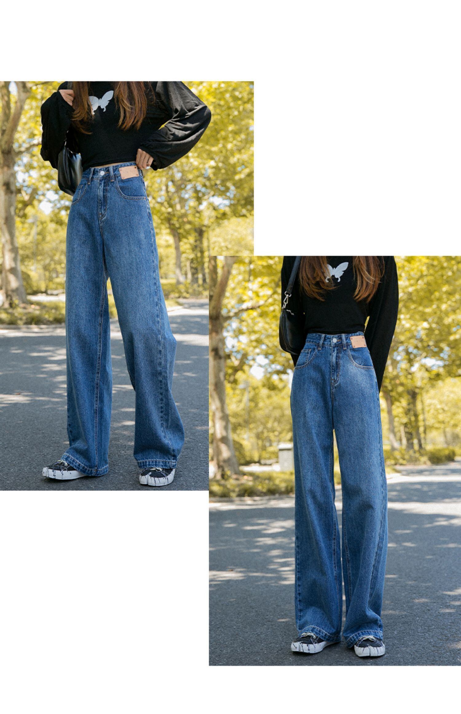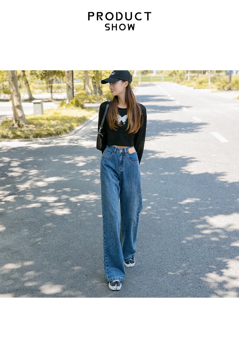-ウエストジーンズレディースルーズストレート2021年春秋新作スタイル細くてハイハンギングワイドレッグモップロングパンツ スプリング 春物 オータム 秋物 youqi53311002567