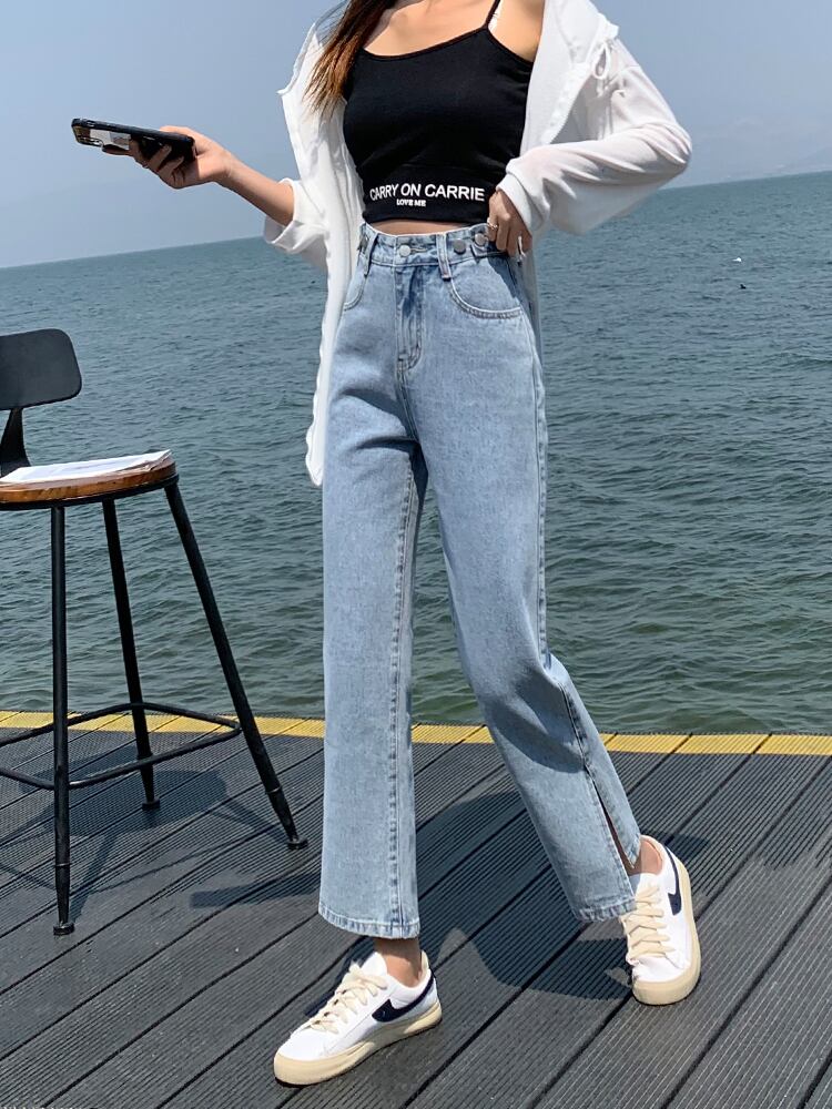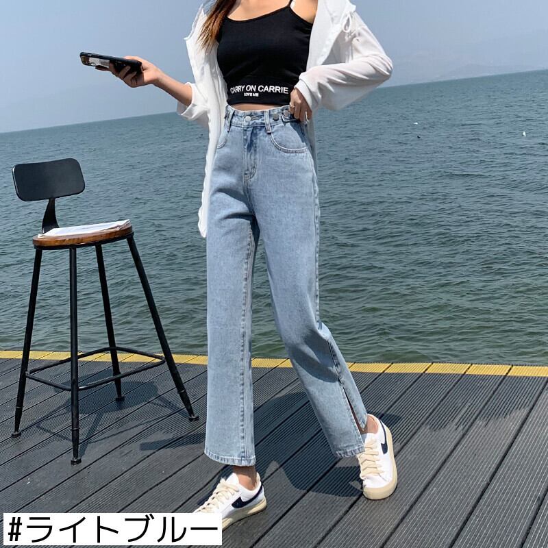 スリットジーンズレディースルーズストレートハイウエスト2021年春夏新作薄手淡色シック香港風味ロングパンツ ハイウェスト レッド スプリング 春物 サマー 夏物 youqi27193827858