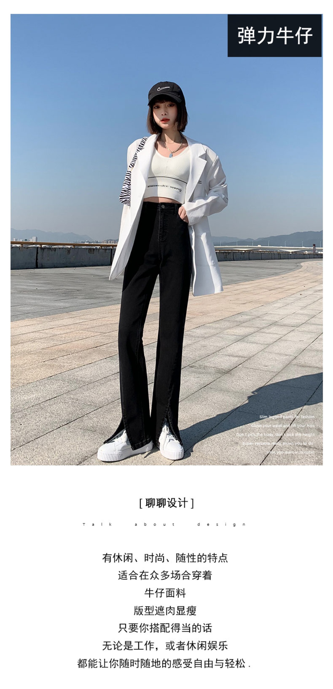 ストレッチハイウエストマイクロブレードジーンズレディーススリムフロントスプリットブラック2021新しい二股モップフロアフレアパンツ レッド youqi13803087029