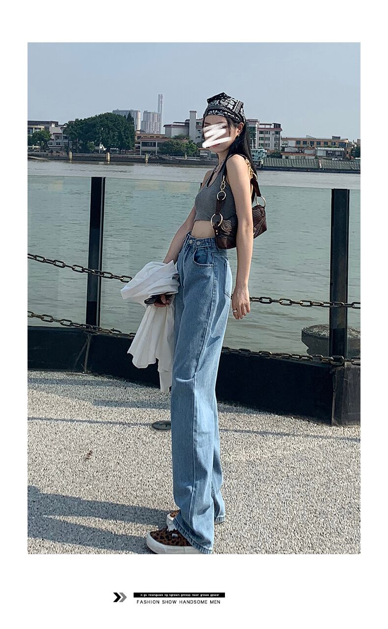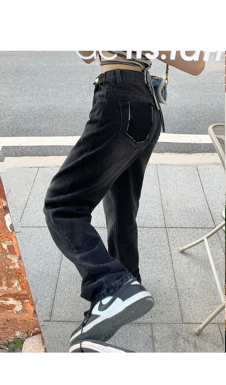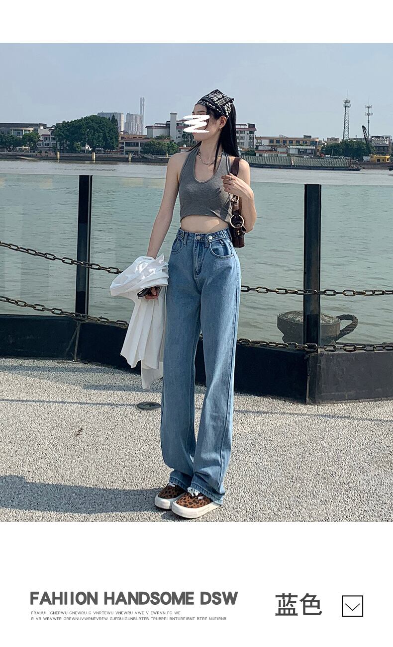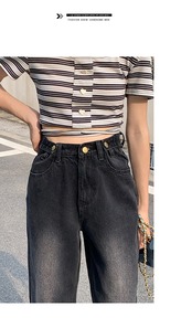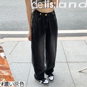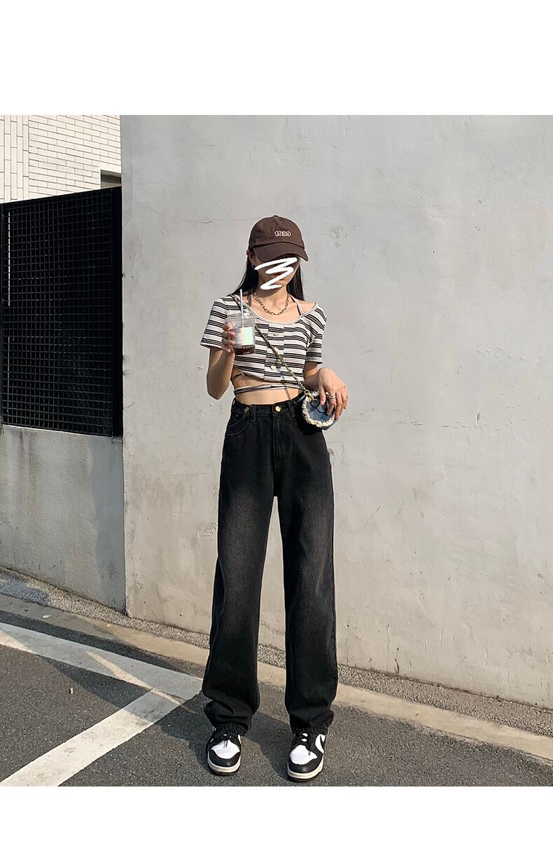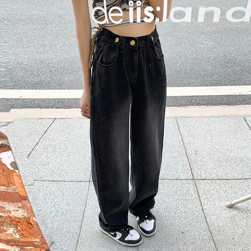黒とグレーのジーンズの女性の夏の薄いルーズワイドレッグハイウエストの秋の服2021新しい薄くて用途の広いパンツ ブラック サマー 夏物 オータム 秋物 youqi60539718161