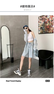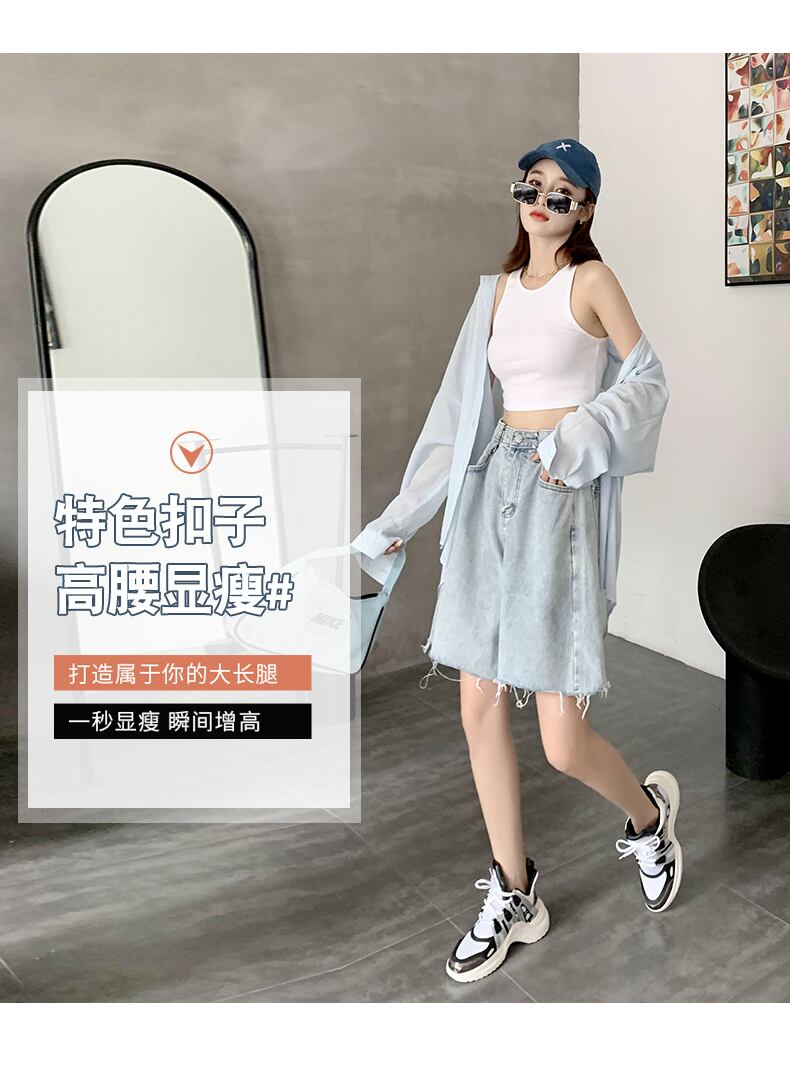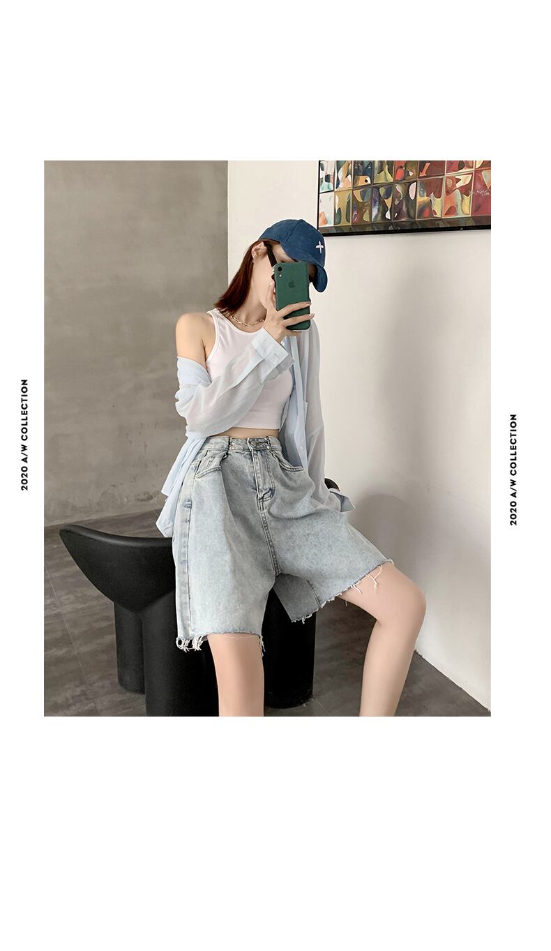 トレンディなインを着用するデニム5ポイントショーツ女性の2020年夏の薄片ハイウエスト香港風味のストレートチューブルーズ5ポイントショーツ レッド サマー 夏物 ブルマー youqi10632205725