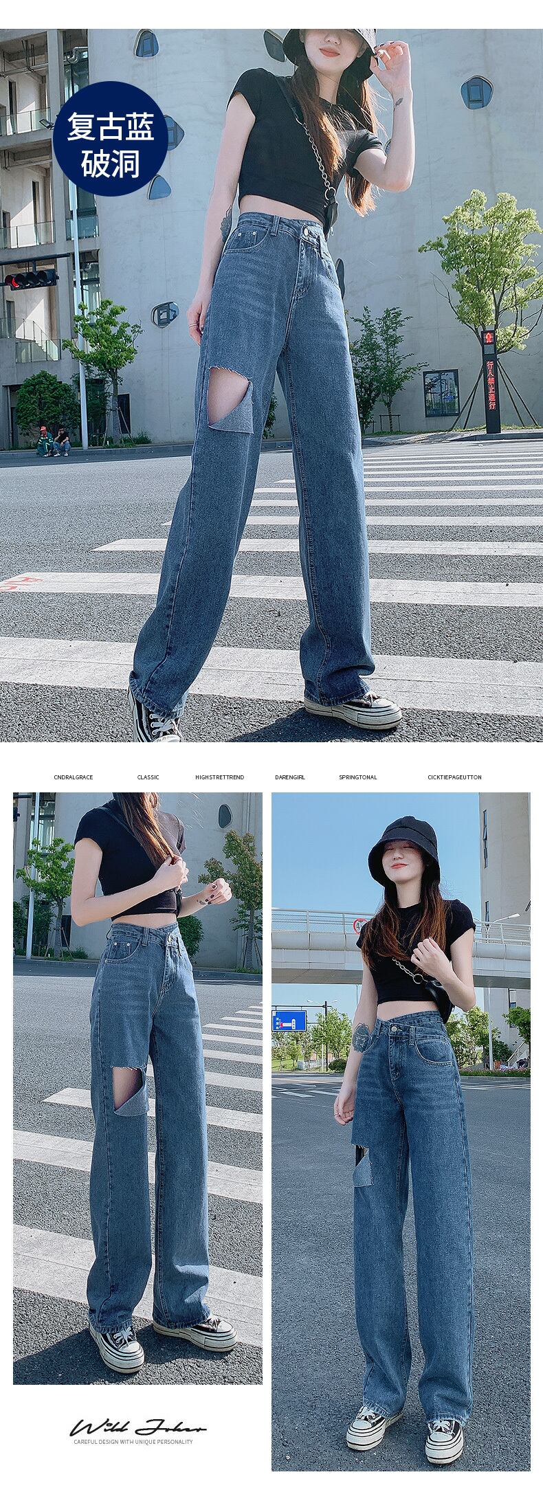 ヒョンヤスタイルイレギュラーデザインジーンズハイウエストストレートチューブ2021夏薄ワイドレッグルーズモップパンツ ハイウェスト サマー 夏物 ワイドパンツ youqi71912853952