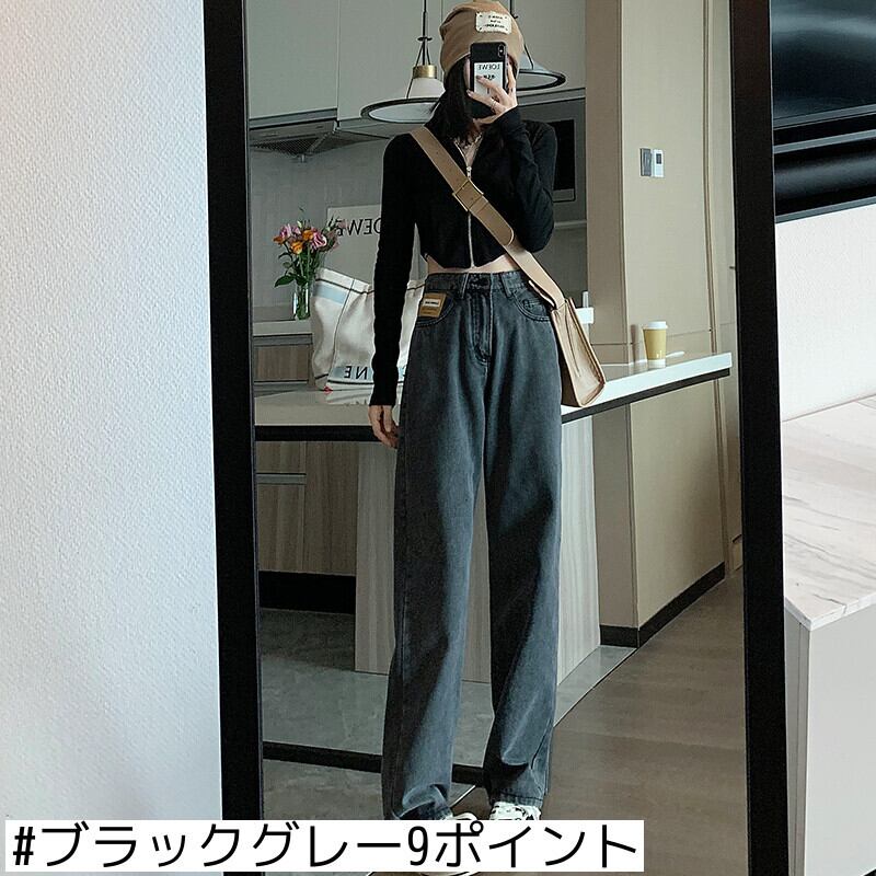 黒のワイドレッグジーンズの女性の春と秋のオールマッチルーズ2021新しい秋の服は薄いハイウエストフロアモップパンツを示しています ハイウェスト ブラック スプリング 春物 オータム 秋物 youqi89576955755