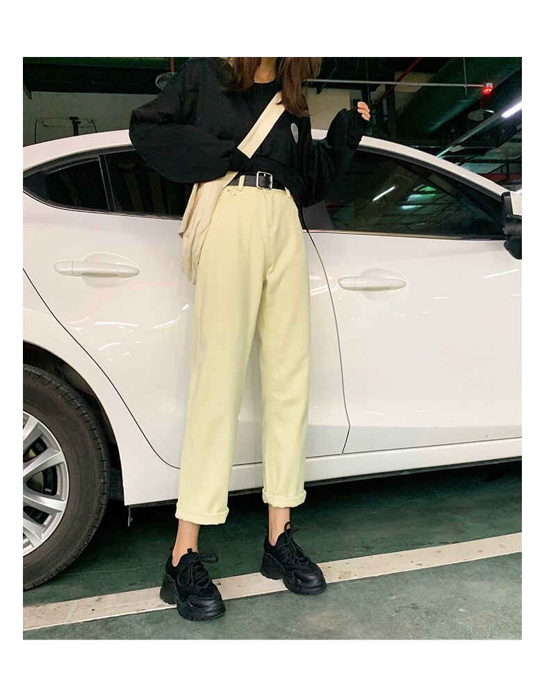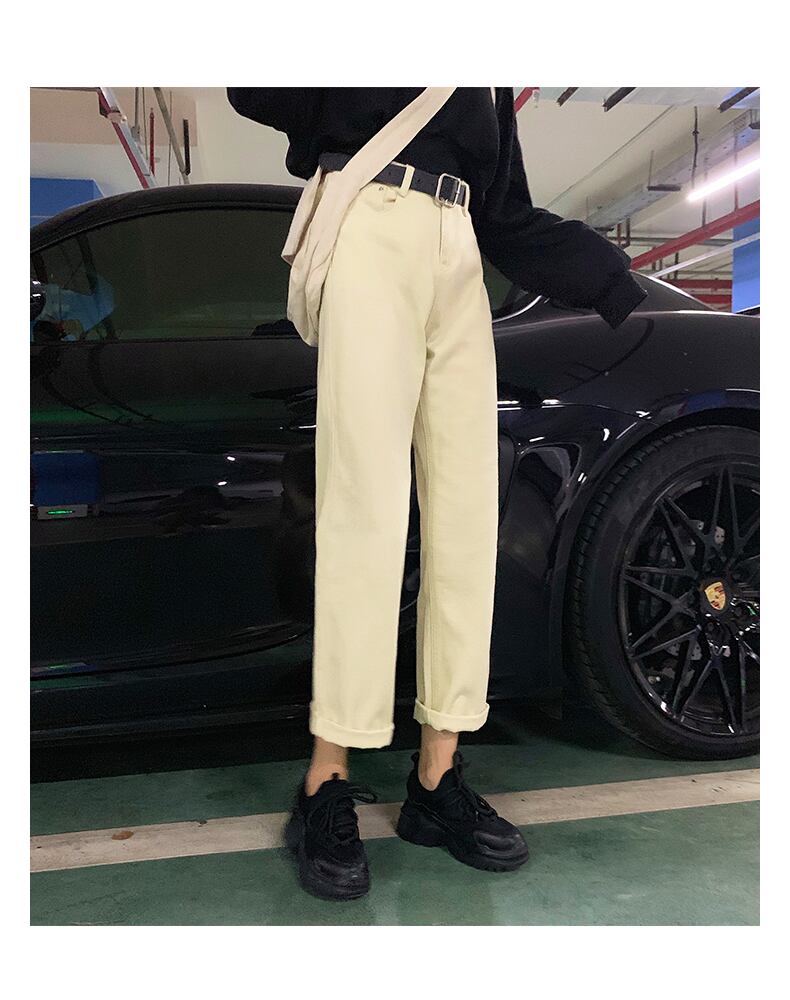 ベージュストレートジーンズレディースルーズハイウエストバージョンは細くてハイワイドレッグパンツアプリコットカジュアルパンツ秋 ハイウェスト オータム 秋物 ワイドパンツ youqi80330916542