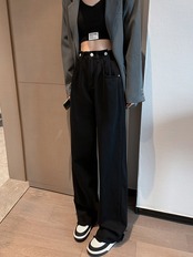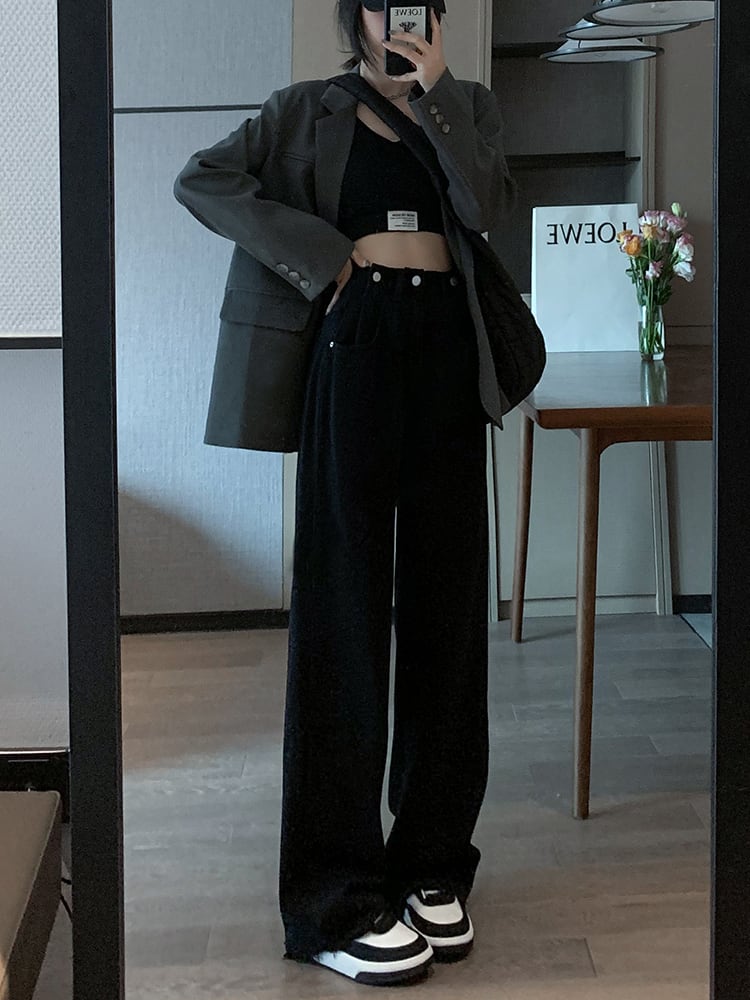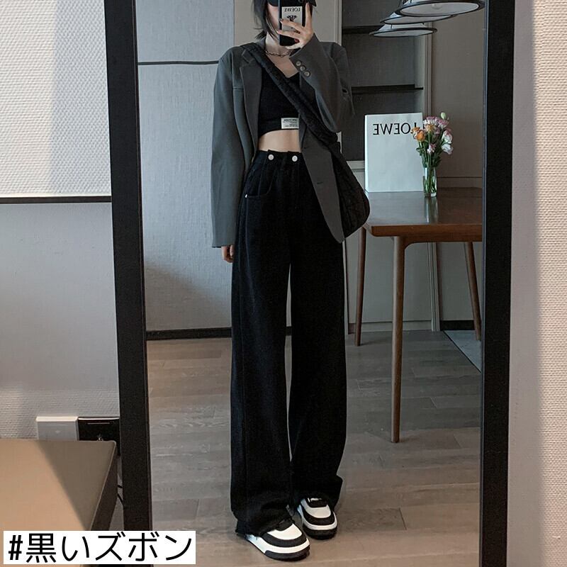 ブラックジーンズレディースルーズ春秋ストレートチューブ2021ニューハイウエストオールマッチスモールマンモップワイドレッグパンツ ハイウェスト スプリング 春物 オータム 秋物 ワイドパンツ youqi92932510612