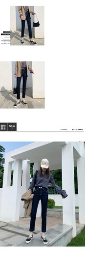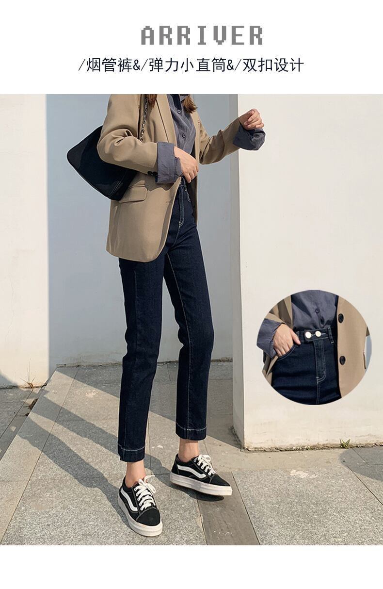ストレートレッグジーンズレディースルーズ2021年春秋新作ダークブルーオールマッチハイウエストスリム9点たばこパイプパンツトレンド スプリング 春物 オータム 秋物 youqi49073484898