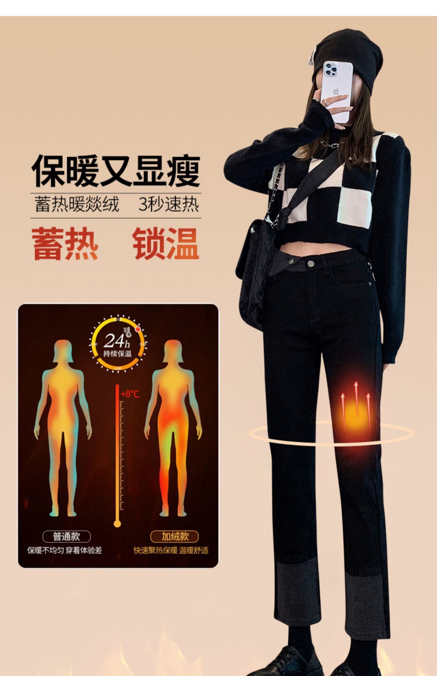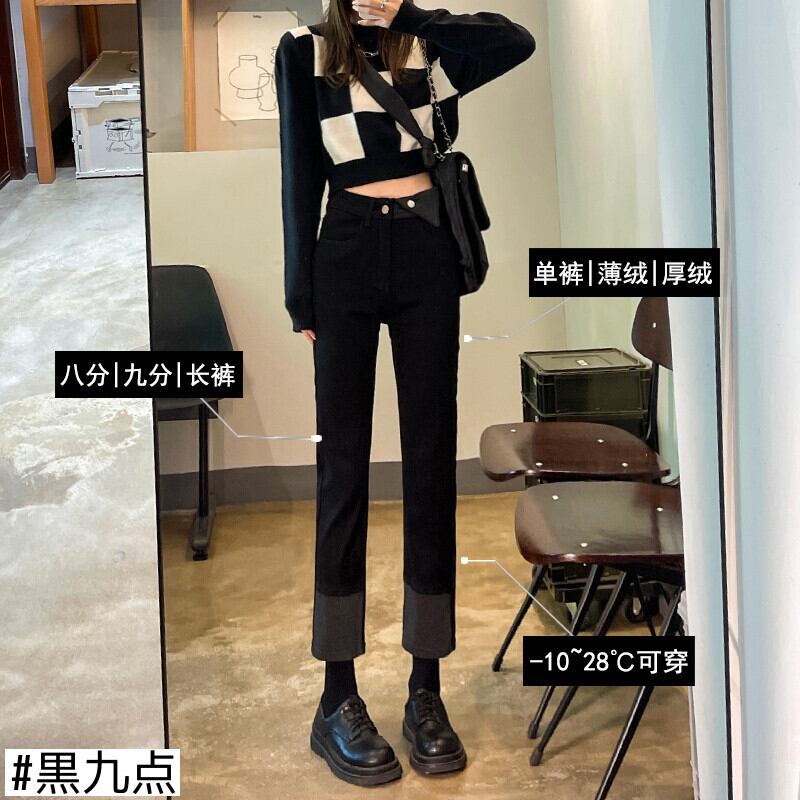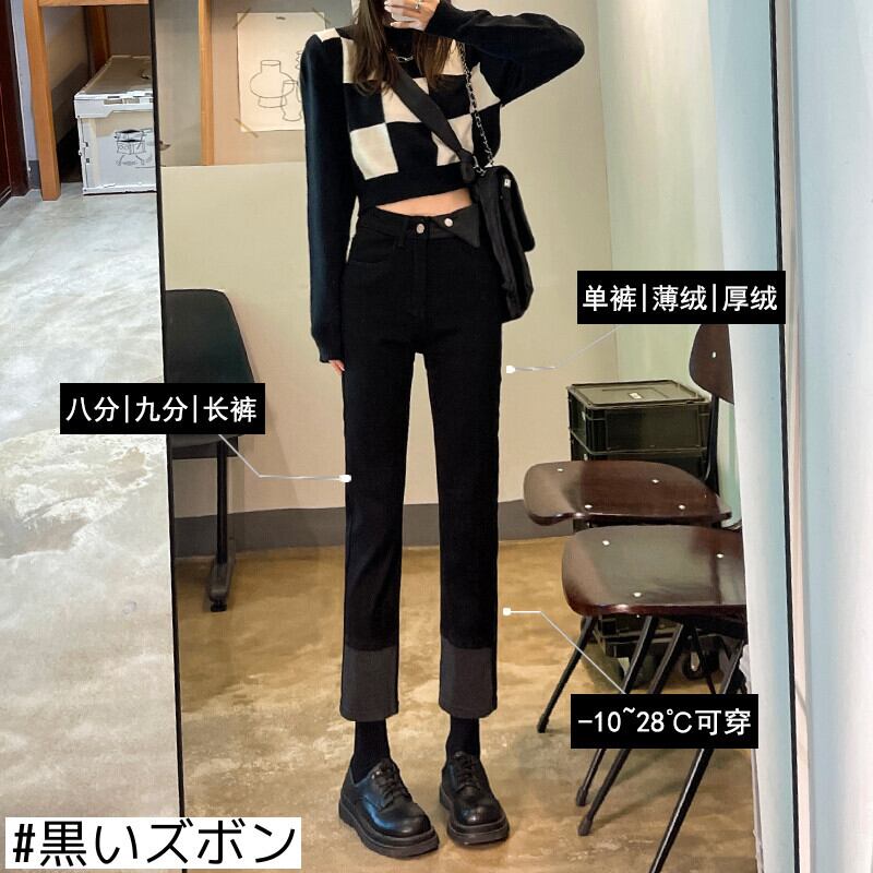 -ウエストストレートレッグジーンズの女性は薄くて8ポイント小さい2021年の新しい秋と冬のスモークパイプブラックデザインパンツ オータム 秋物 ウィンター 冬物 youqi56287411743